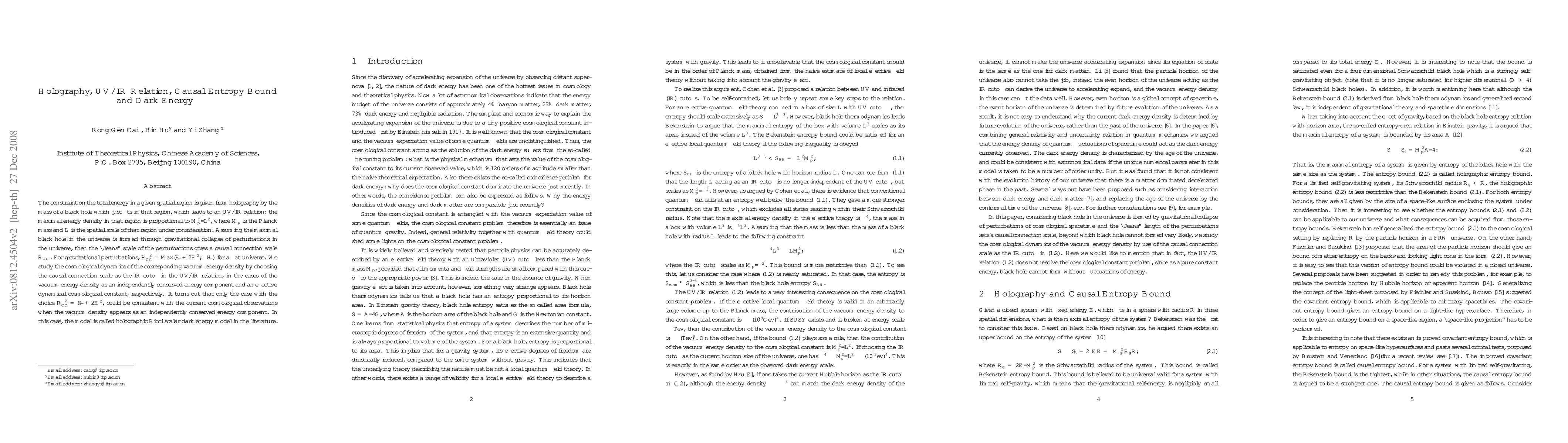 This paper explores the relationship between holography, UV/IR connection, causal entropy bound, and dark energy. It finds that only a specific case, where the causal connection scale equals the square root of the sum of time derivative of Hubble's parameter and twice the square of Hubble's parameter, aligns with current cosmological observations when vacuum energy density is conserved. This model is identified as the holographic Ricci scalar dark energy model.