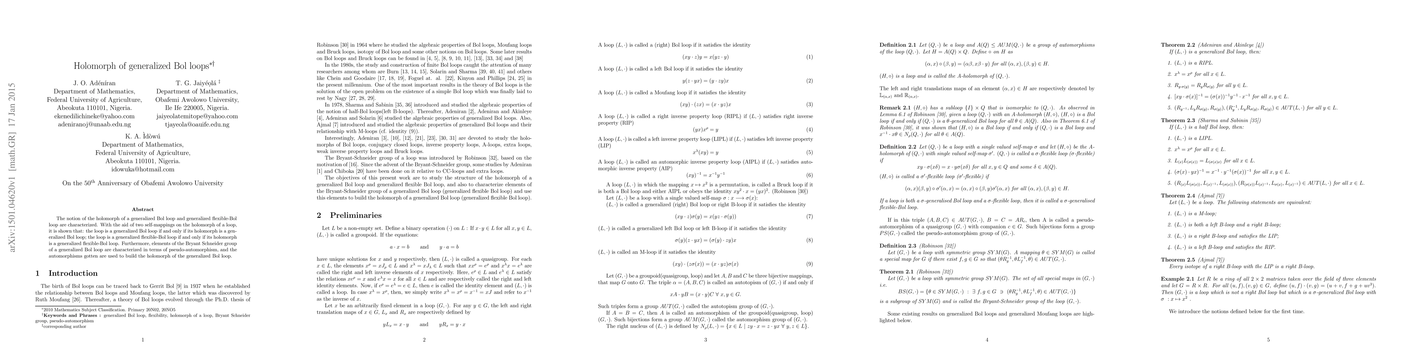 This paper characterizes the holomorph of generalized Bol loops and generalized flexible-Bol loops, proving that a loop's classification is preserved under its holomorph. It also describes the Bryant Schneider group elements in terms of pseudo-automorphisms and uses these automorphisms to construct the holomorph.