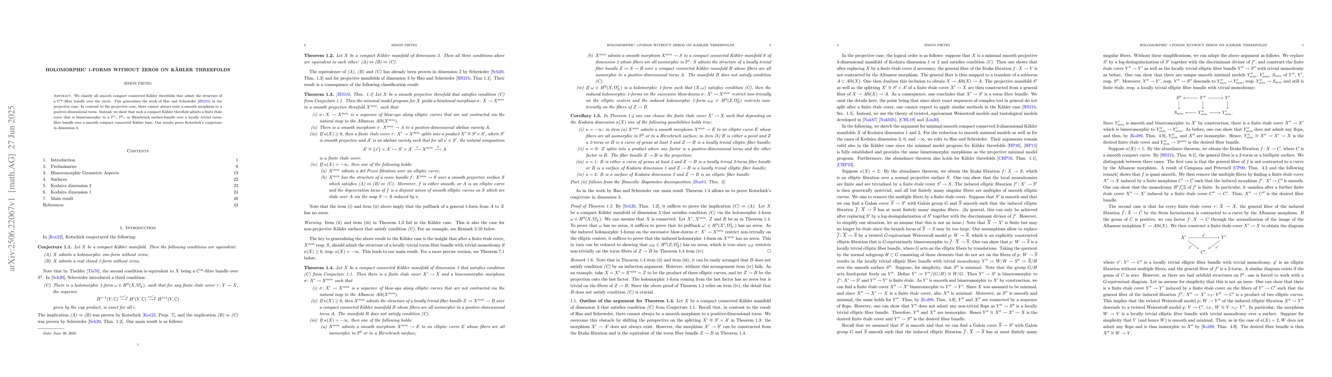 We classify all smooth compact connected K\"ahler threefolds that admit the structure of a $C^\infty$-fiber bundle over the circle. This generalizes the work of Hao and Schreieder in the projective case. In contrast to the projective case, there cannot always exist a smooth morphism to a positive-dimensional torus. Instead, we show that such a compact K\"ahler threefold admits a finite \'etale cover that is bimeromorphic to a $\mathbb{P}^1$-, $\mathbb{P}^2$-, or Hirzebruch surface-bundle over a locally trivial torus-fiber bundle over a smooth compact connected K\"ahler base. Our results prove Kotschick's conjecture in dimension 3.