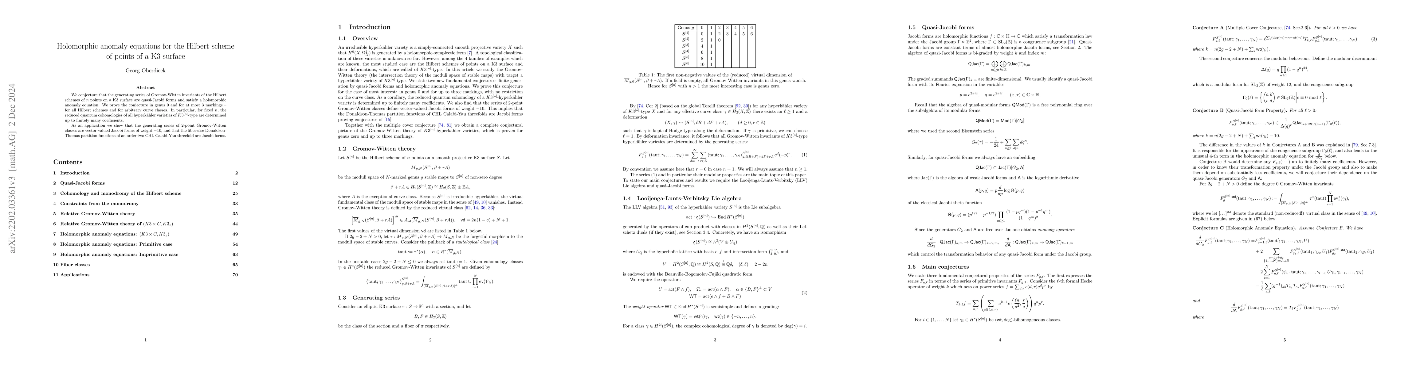 We conjecture that the generating series of Gromov-Witten invariants of the Hilbert schemes of $n$ points on a K3 surface are quasi-Jacobi forms and satisfy a holomorphic anomaly equation. We prove the conjecture in genus $0$ and for at most $3$ markings - for all Hilbert schemes and for arbitrary curve classes. In particular, for fixed $n$, the reduced quantum cohomologies of all hyperk\"ahler varieties of $K3^{[n]}$-type are determined up to finitely many coefficients. As an application we show that the generating series of $2$-point Gromov-Witten classes are vector-valued Jacobi forms of weight $-10$, and that the fiberwise Donaldson-Thomas partition functions of an order two CHL Calabi-Yau threefold are Jacobi forms.