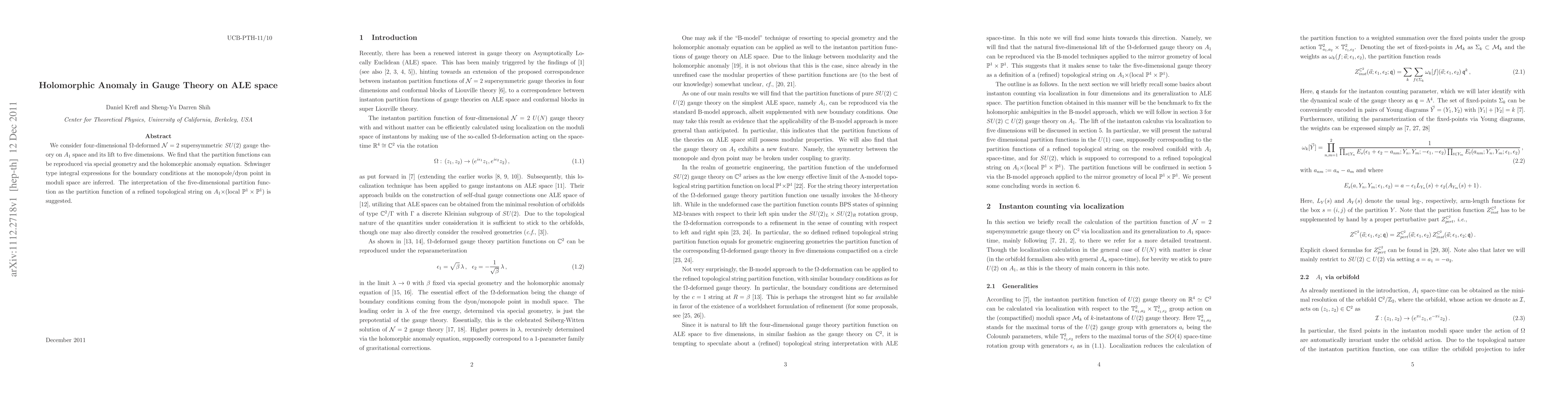 We consider four-dimensional Omega-deformed N=2 supersymmetric SU(2) gauge theory on A1 space and its lift to five dimensions. We find that the partition functions can be reproduced via special geometry and the holomorphic anomaly equation. Schwinger type integral expressions for the boundary conditions at the monopole/dyon point in moduli space are inferred. The interpretation of the five-dimensional partition function as the partition function of a refined topological string on A1x(local P1xP1) is suggested.