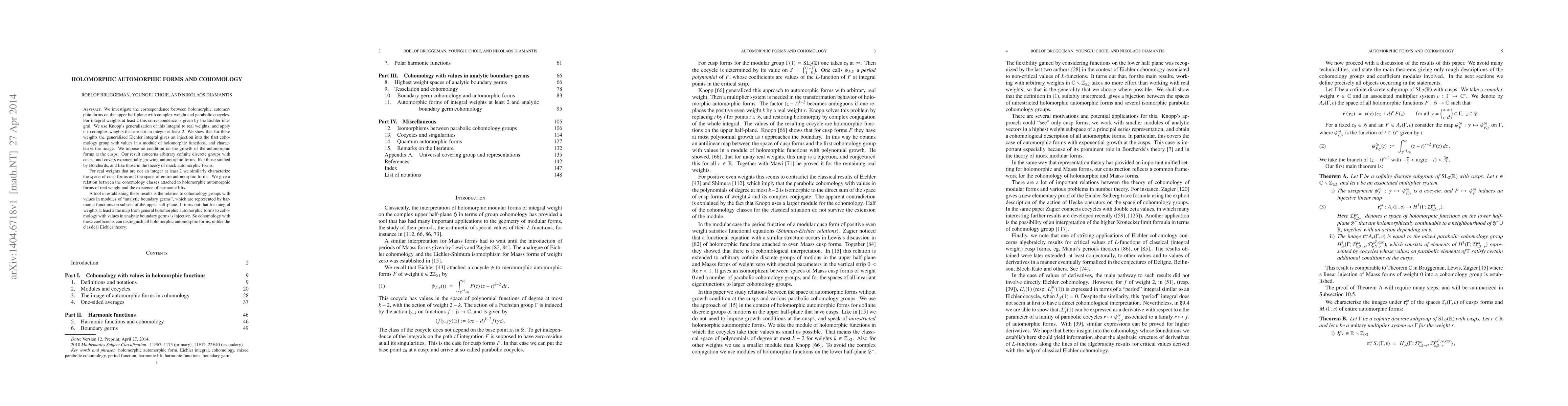 We investigate the correspondence between holomorphic automorphic forms on the upper half-plane with complex weight and parabolic cocycles. For integral weights at least 2 this correspondence is given by the Eichler integral. Knopp generalized this to real weights. We show that for weights that are not an integer at least 2 the generalized Eichler integral gives an injection into the first cohomology group with values in a module of holomorphic functions, and characterize the image. We impose no condition on the growth of the automorphic forms at the cusps. For real weights that are not an integer at least 2 we similarly characterize the space of cusp forms and the space of entire automorphic forms. We give a relation between the cohomology classes attached to holomorphic automorphic forms of real weight and the existence of harmonic lifts. A tool in establishing these results is the relation to cohomology groups with values in modules of "analytic boundary germs", which are represented by harmonic functions on subsets of the upper half-plane. Even for positive integral weights cohomology with these coefficients can distinguish all holomorphic automorphic forms, unlike the classical Eichler theory.