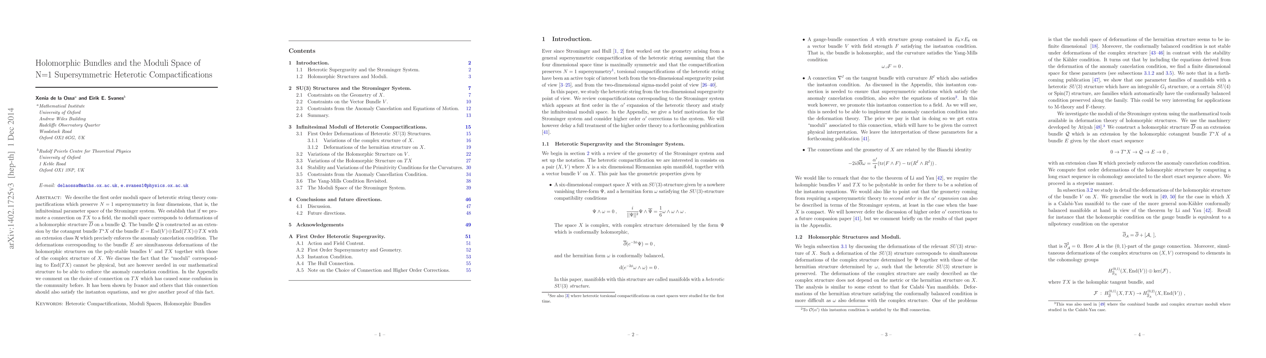 We describe the first order moduli space of heterotic string theory compactifications which preserve $N=1$ supersymmetry in four dimensions, that is, the infinitesimal parameter space of the Strominger system. We establish that if we promote a connection on $TX$ to a field, the moduli space corresponds to deformations of a holomorphic structure $\bar D$ on a bundle $\cal Q$. The bundle $\cal Q$ is constructed as an extension by the cotangent bundle $T^*X$ of the bundle $E= {\rm End}(V) \oplus {\rm End}(TX) \oplus TX$ with an extension class $\cal H$ which precisely enforces the anomaly cancelation condition. The deformations corresponding to the bundle $E$ are simultaneous deformations of the holomorphic structures on the poly-stable bundles $V$ and $TX$ together with those of the complex structure of $X$. We discuss the fact that the "moduli" corresponding to ${\rm End}(TX)$ cannot be physical, but are however needed in our mathematical structure to be able to enforce the anomaly cancelation condition. In the Appendix we comment on the choice of connection on $TX$ which has caused some confusion in the community before. It has been shown by Ivanov and others that this connection should also satisfy the instanton equations, and we give another proof of this fact.