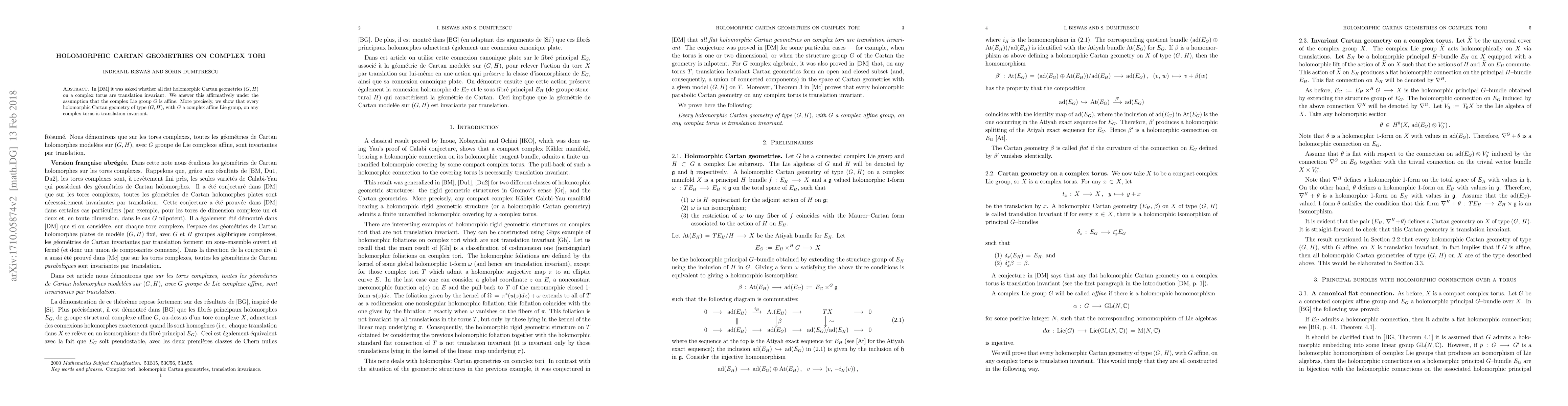 This paper confirms that all flat holomorphic Cartan geometries on complex tori are translation invariant when the complex Lie group is affine, specifically proving that any such geometry of type (G,H) with G an affine complex Lie group is translation invariant.