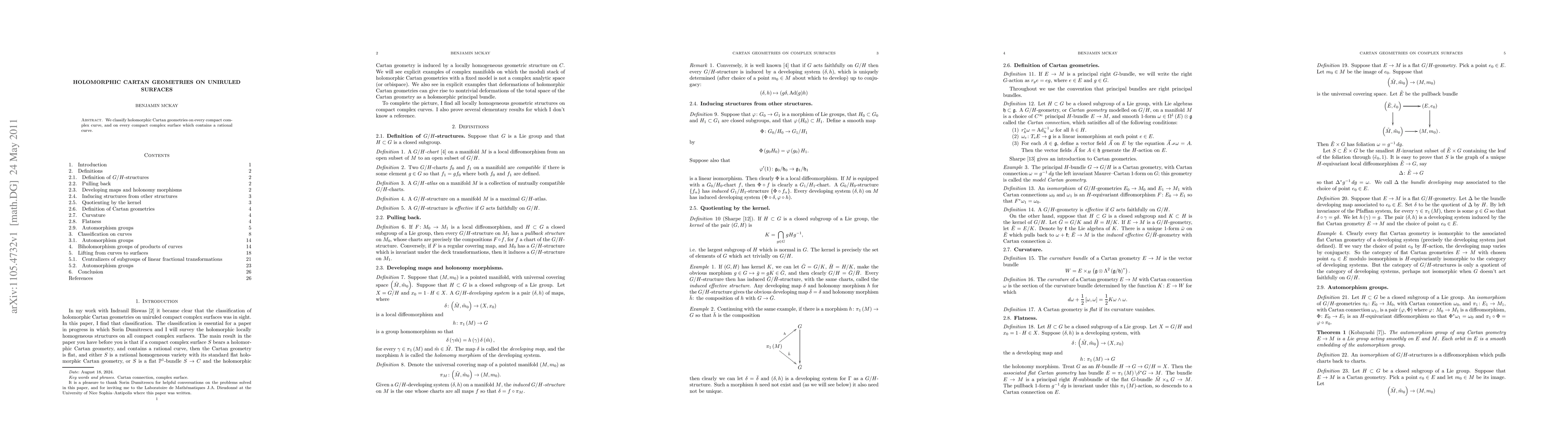 Summary: This paper classifies holomorphic Cartan geometries on compact complex curves and on uniruled complex surfaces, focusing on those containing at least one rational curve. The study provides a detailed understanding of the geometric structures involved.