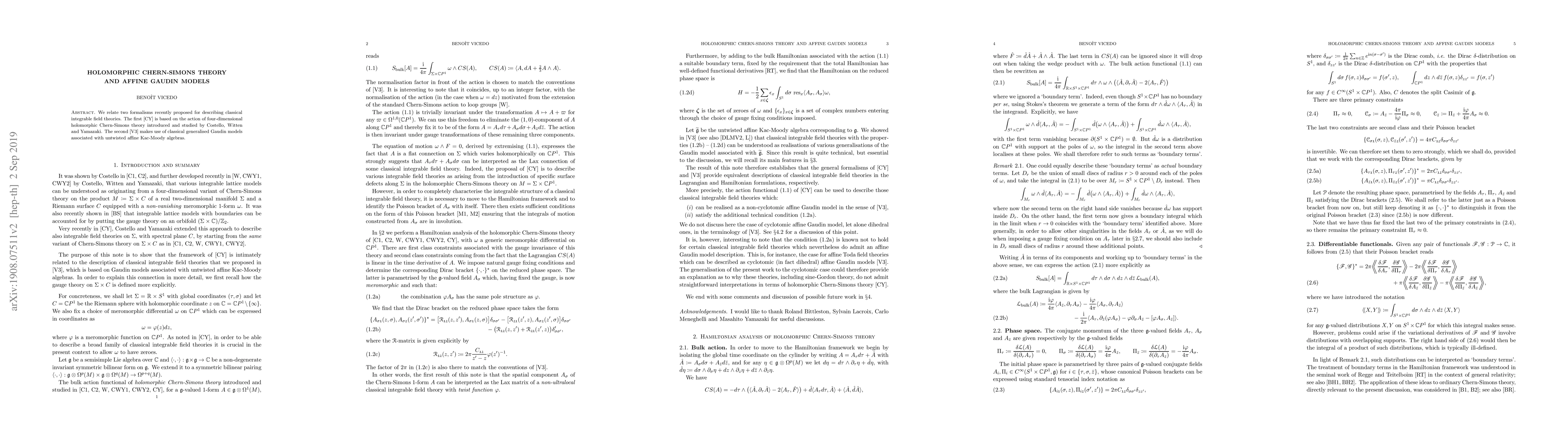 This paper establishes a connection between holomorphic Chern-Simons theory, recently developed for four-dimensional field theories, and classical generalised Gaudin models tied to untwisted affine Kac-Moody algebras, highlighting their shared integrability structures.