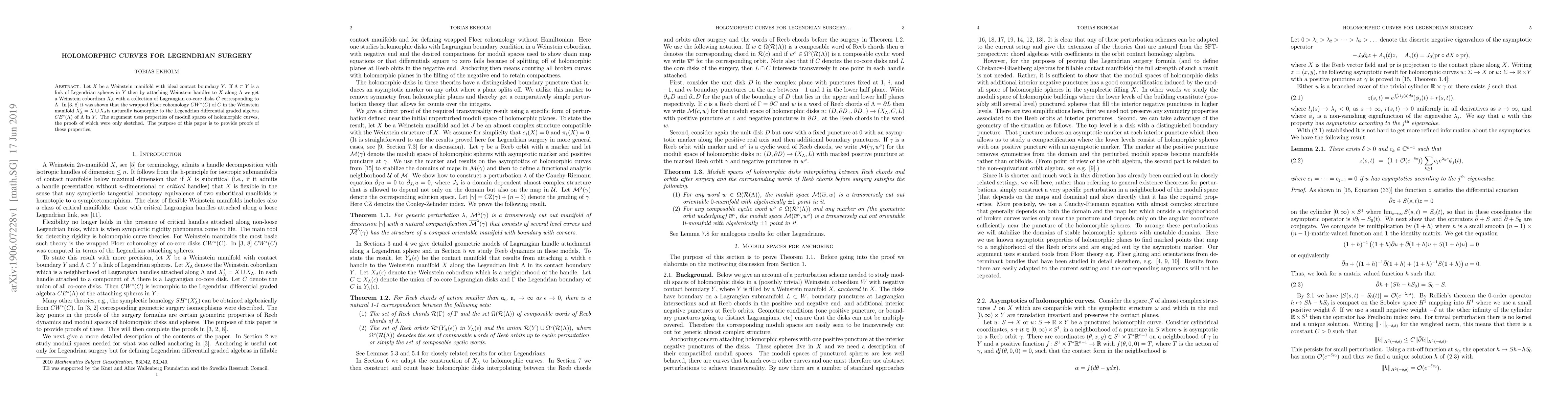 Let $X$ be a Weinstein manifold with ideal contact boundary $Y$. If $\Lambda\subset Y$ is a link of Legendrian spheres in $Y$ then by attaching Weinstein handles to $X$ along $\Lambda$ we get a Weinstein cobordism $X_{\Lambda}$ with a collection of Lagrangian co-core disks $C$ corresponding to $\Lambda$. In \cite{BEE, EL} it was shown that the wrapped Floer cohomology $CW^{\ast}(C)$ of $C$ in the Weinstein manifold $X'_{\Lambda}=X\cup X_{\Lambda}$is naturally isomorphic to the Legendrian differential graded algebra $CE^{\ast}(\Lambda)$ of $\Lambda$ in $Y$. The argument uses properties of moduli spaces of holomorphic curves, the proofs of which were only sketched. The purpose of this paper is to provide proofs of these properties.