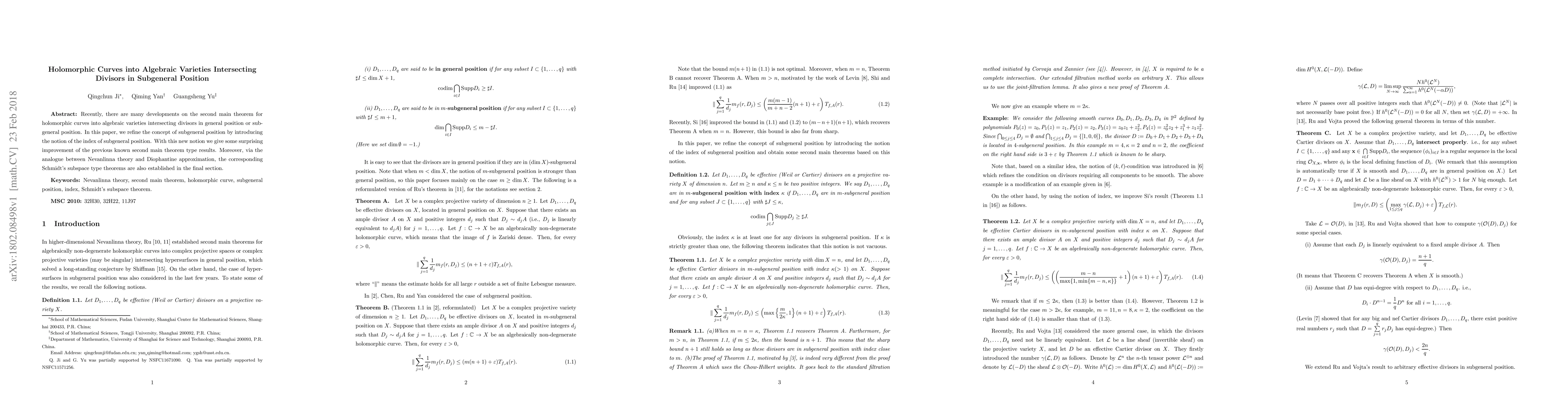 Recently, there are many developments on the second main theorem for holomorphic curves into algebraic varieties intersecting divisors in general position or subgeneral position. In this paper, we refine the concept of subgeneral position by introducing the notion of the index of subgeneral position. With this new notion we give some surprising improvement of the previous known second main theorem type results. Moreover, via the analogue between Nevanlinna theory and Diophantine approximation, the corresponding Schmidt's subspace type theorems are also established in the final section.