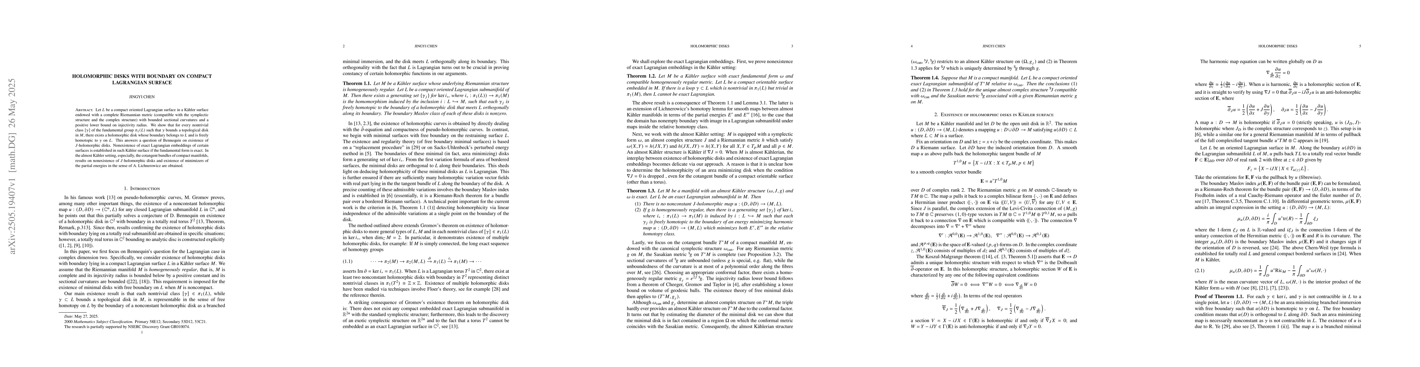 The paper demonstrates the existence of holomorphic disks under specific geometric conditions, addressing a question posed by Bennequin and establishing nonexistence results for exact Lagrangian embeddings.