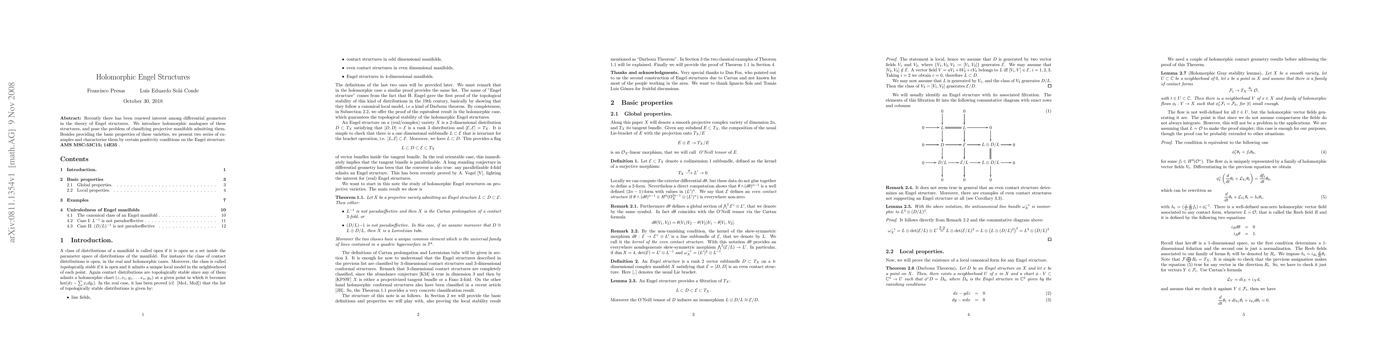Summary: This paper introduces holomorphic Engel structures and explores their classification on projective manifolds. It provides foundational properties, presents two series of examples, and characterizes them via positivity conditions on the Engel structure.