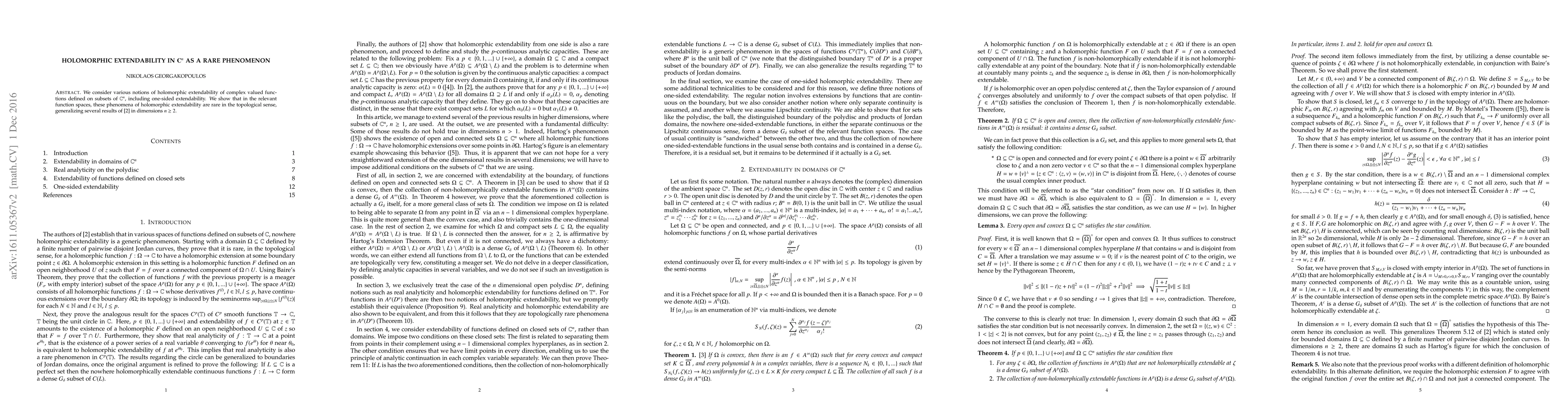 This paper investigates different types of holomorphic extendability for complex-valued functions in $\mathbf C^n$, demonstrating that such extendability is rare in relevant function spaces, thereby generalizing prior results in higher dimensions.