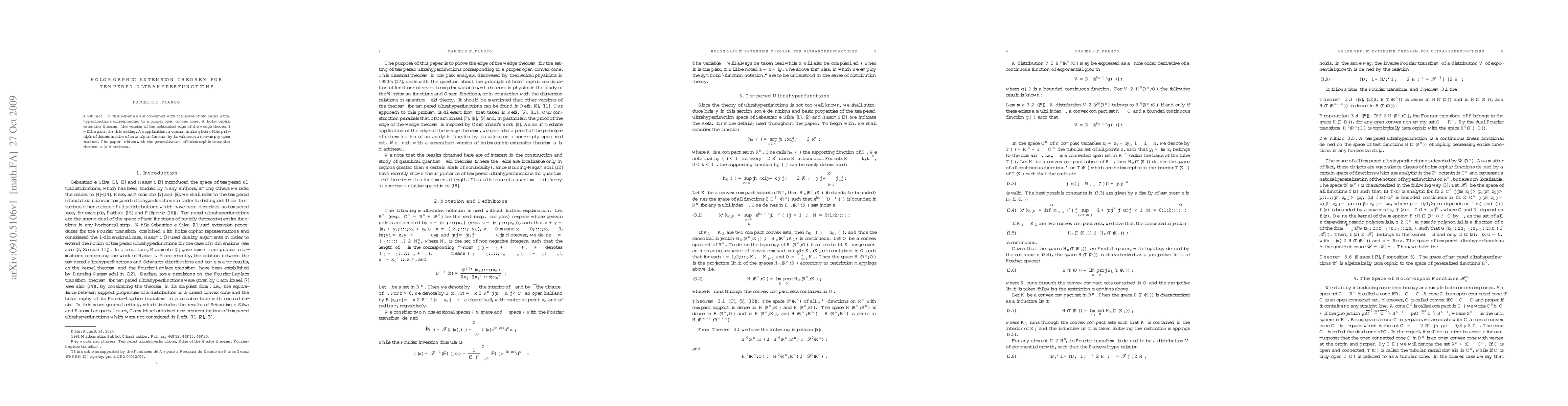 This paper establishes a holomorphic extension theorem for tempered ultrahyperfunctions within a proper open convex cone, extending the edge of the wedge theorem to this setting. It also applies the theorem to determine analytic functions from their values on a non-empty open real set.