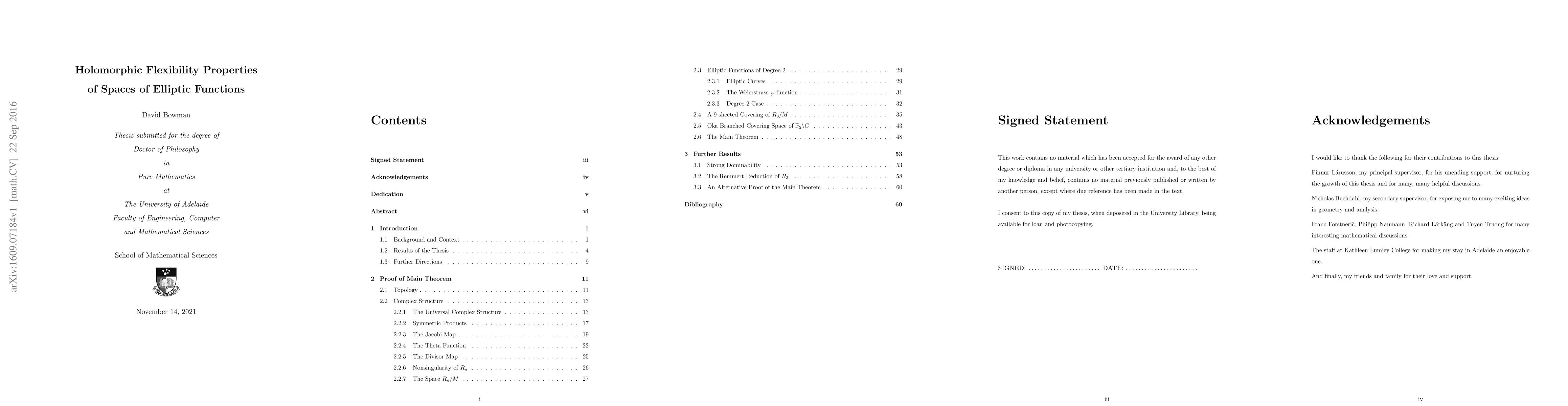 This paper explores the holomorphic flexibility properties of spaces of elliptic functions, specifically focusing on the sets $R_2$ and $R_3$ of holomorphic maps from elliptic curves to the Riemann sphere. It demonstrates that $R_2$ is homogeneous and an Oka manifold, and presents a main theorem showing that $R_3$ has a $6$-sheeted branched covering space that is an Oka manifold, leading to $R_3$ being $\mathbb{C}$-connected and dominable.