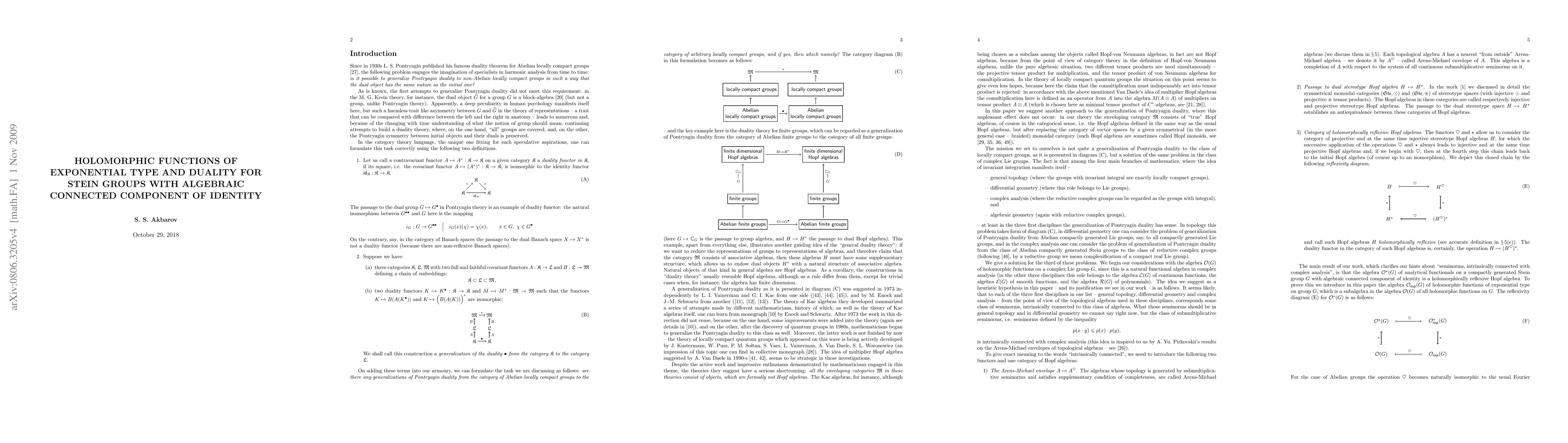 We suggest a generalization of Pontryagin duality from the category of commutative Stein groups to the category of (not necessarily commutative) Stein groups with algebraic connected component of identity. In contrast to the other similar generalizations, in our approach the enveloping category consists of Hopf algebras (in a proper symmetrical monoidal category).