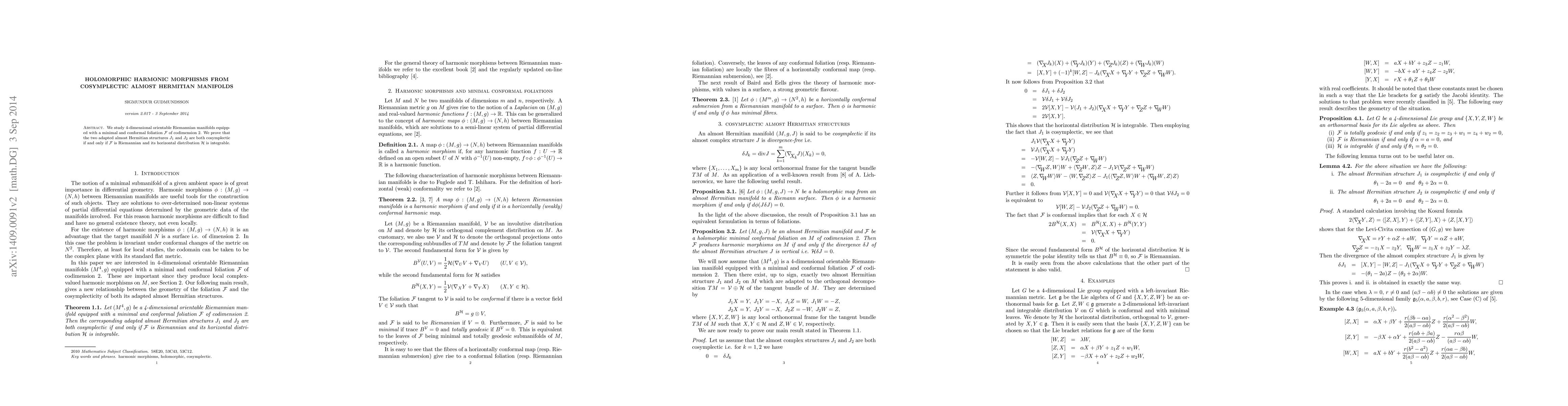 Summary: This paper investigates 4-dimensional Riemannian manifolds with minimal and conformal foliations, proving that the adapted almost Hermitian structures are cosymplectic if and only if the foliation is Riemannian and its horizontal distribution is integrable.