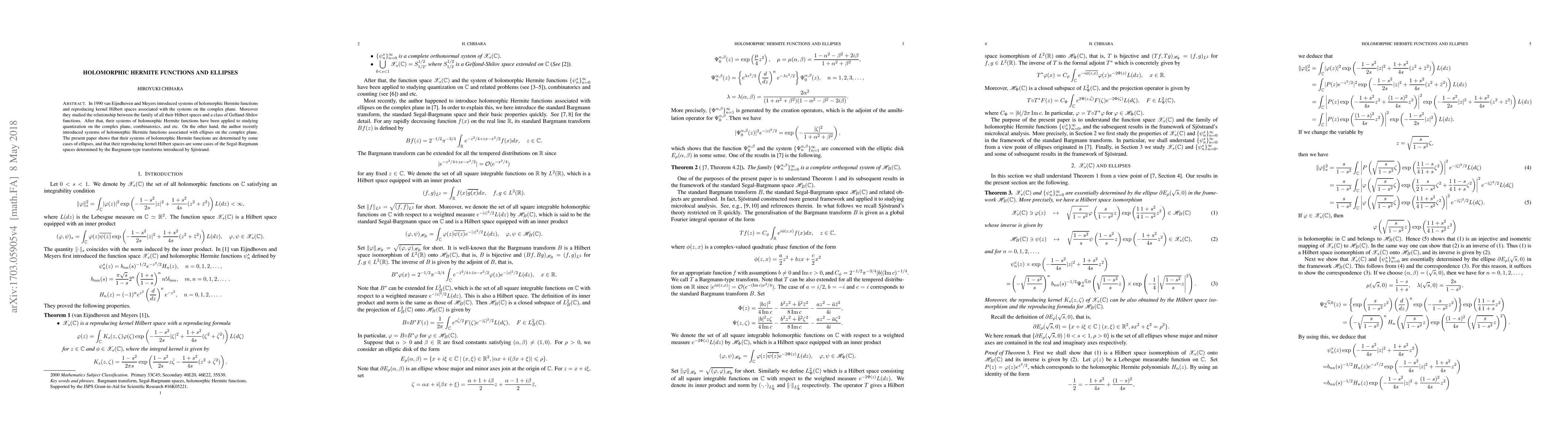 This paper explores systems of holomorphic Hermite functions associated with ellipses on the complex plane, demonstrating their determination by specific ellipse cases and linking their reproducing kernel Hilbert spaces to Segal-Bargmann spaces via Bargmann-type transforms.