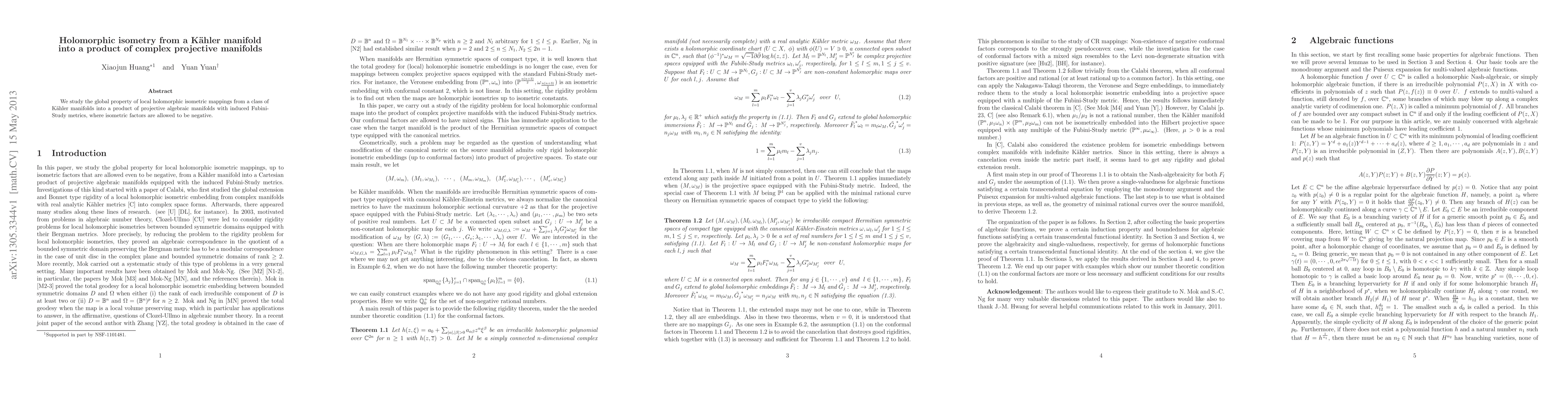 Summary: This paper investigates global properties of local holomorphic isometric mappings from a class of Kähler manifolds into products of projective algebraic manifolds, allowing for negative isometric factors with induced Fubini-Study metrics. The focus is on understanding the broader implications of these mappings.
