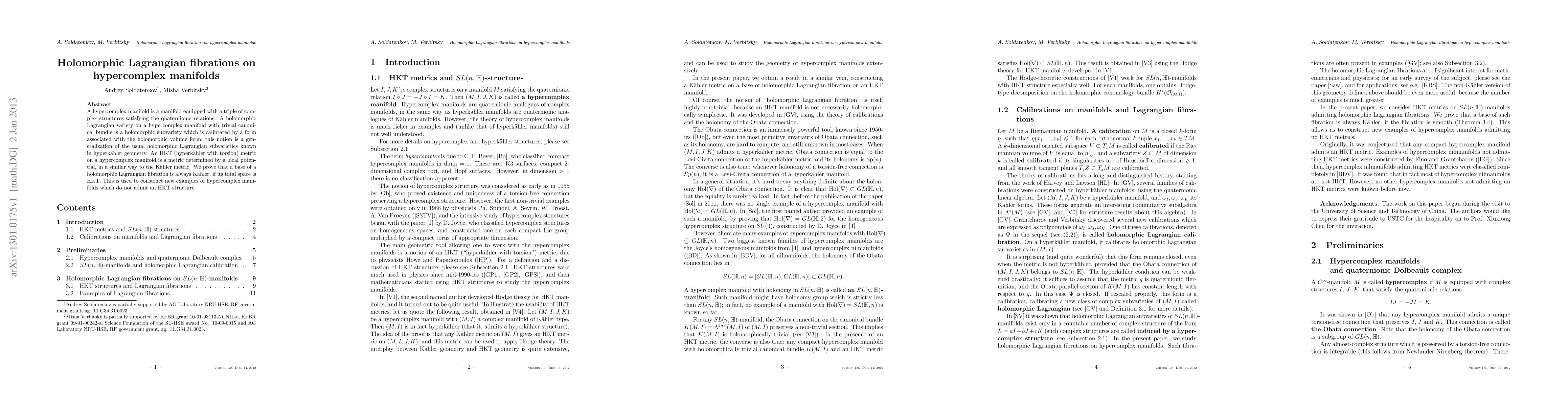 A hypercomplex manifold is a manifold equipped with a triple of complex structures satisfying the quaternionic relations. A holomorphic Lagrangian variety on a hypercomplex manifold with trivial canonical bundle is a holomorphic subvariety which is calibrated by a form associated with the holomorphic volume form; this notion is a generalization of the usual holomorphic Lagrangian subvarieties known in hyperkaehler geometry. An HKT (hyperkaehler with torsion) metric on a hypercomplex manifold is a metric determined by a local potential, in a similar way to the Kaehler metric. We prove that a base of a holomorphic Lagrangian fibration is always Kaehler, if its total space is HKT. This is used to construct new examples of hypercomplex manifolds which do not admit an HKT structure.