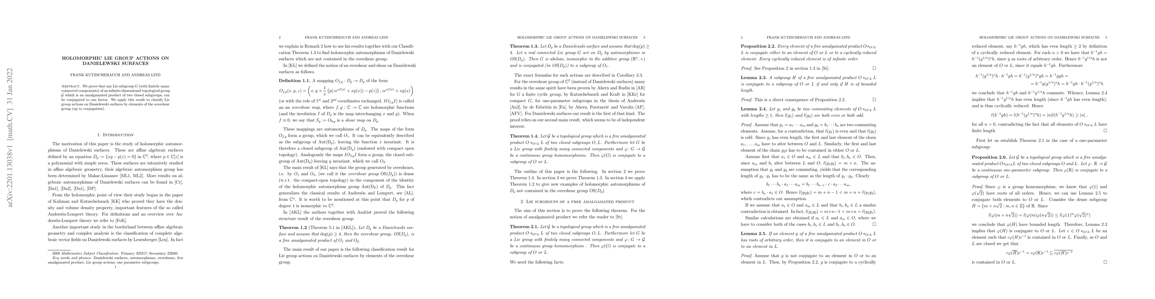 This paper demonstrates that any Lie subgroup $G$ of an infinite-dimensional topological group $\mathcal G$ can be conjugated to one of its factors. The findings are applied to classify Lie group actions on Danielewski surfaces by elements of the overshear group up to conjugation.