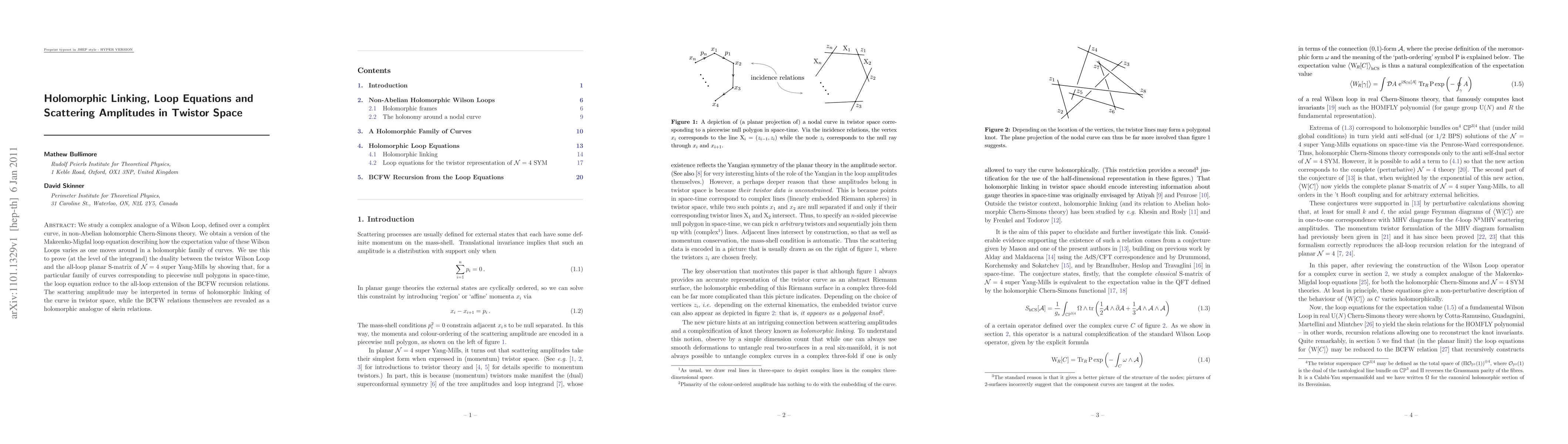 This paper explores a complex analogue of Wilson Loops in non-Abelian holomorphic Chern-Simons theory, deriving a loop equation and proving duality between the twistor Wilson Loop and the S-matrix of N=4 super Yang-Mills, showing scattering amplitudes as holomorphic linking in twistor space.