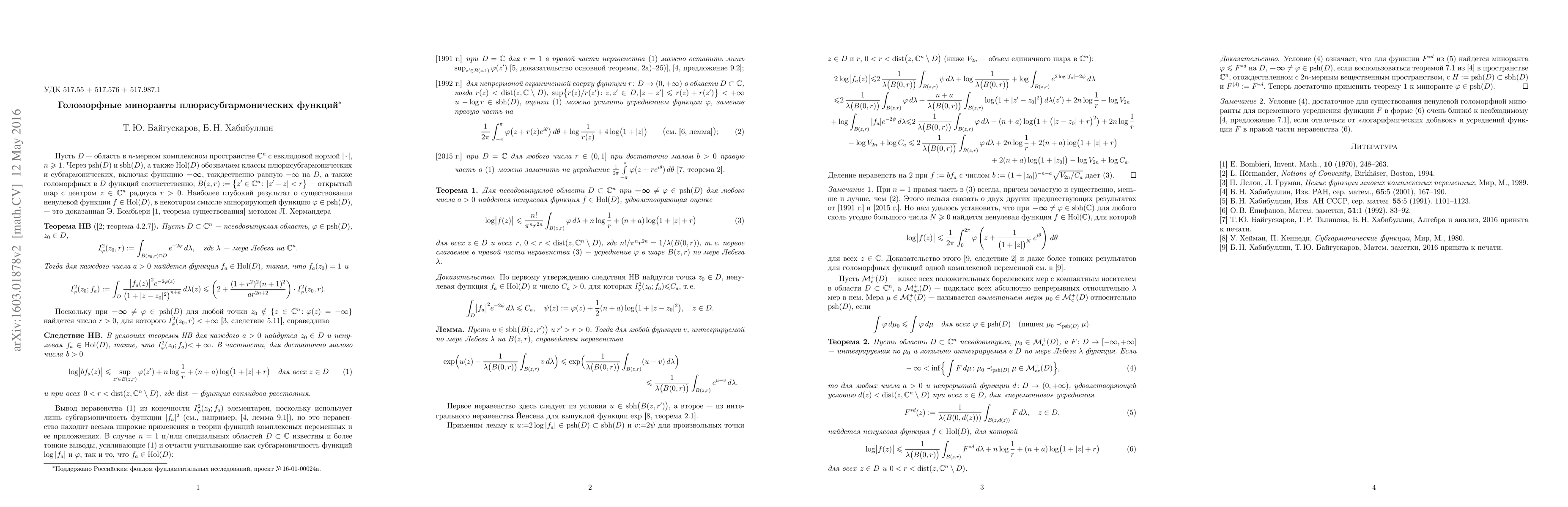 This paper establishes the existence of a nonzero holomorphic function $f$ on a pseudoconvex domain $D$ that serves as a holomorphic minorant of a plurisubharmonic function $\varphi$, with $\varphi$'s local mean value majorizing $\log |f|$. It also explores a related problem involving the balayage of positive measures for locally integrable functions on $D$.