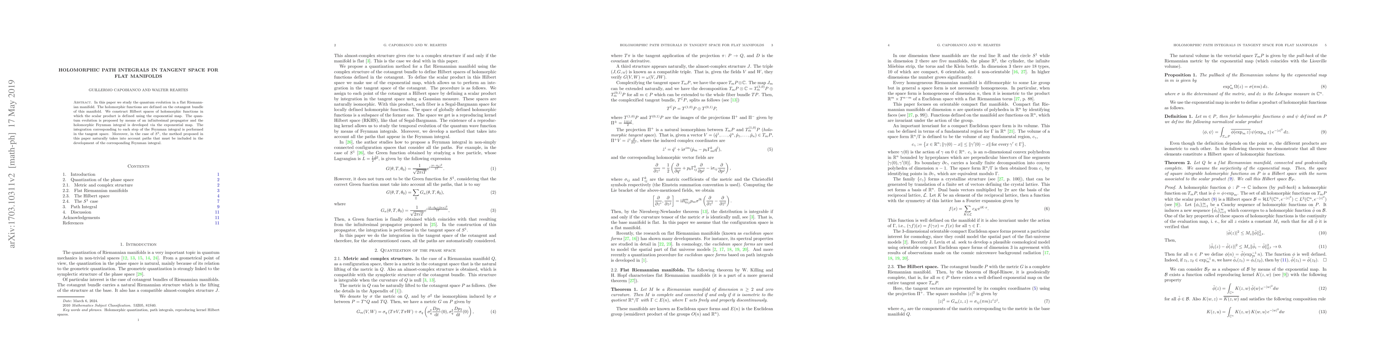 This paper proposes a new method for studying quantum evolution in flat Riemannian manifolds using holomorphic path integrals in tangent space, providing a natural approach to paths on $S^1$.