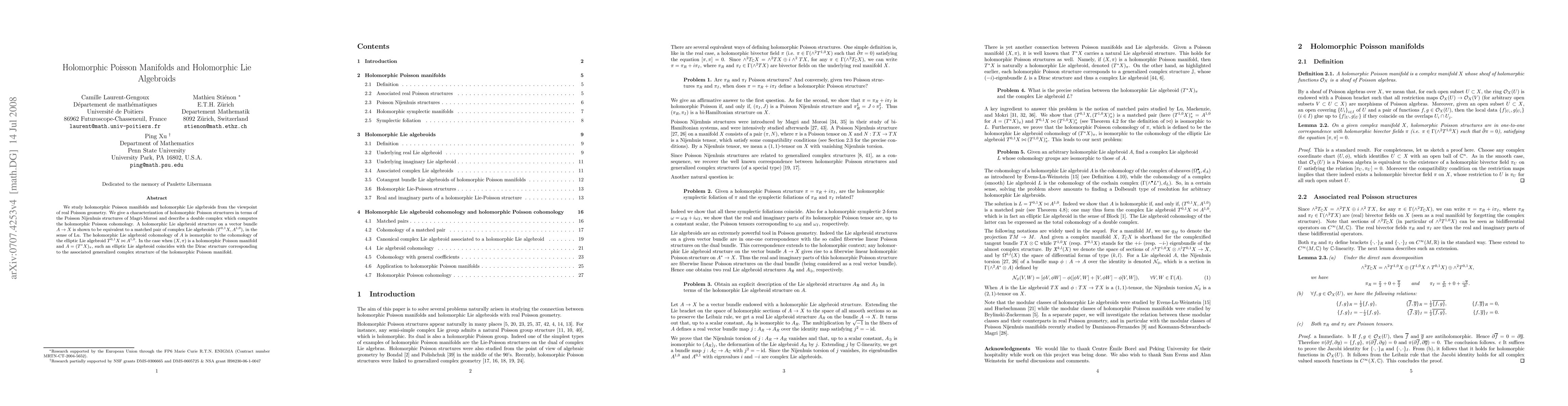 This paper characterizes holomorphic Poisson structures via Poisson Nijenhuis structures and introduces a double complex for holomorphic Poisson cohomology. It also establishes an equivalence between holomorphic Lie algebroids and matched pairs of complex Lie algebroids, linking their cohomology to that of elliptic Lie algebroids.