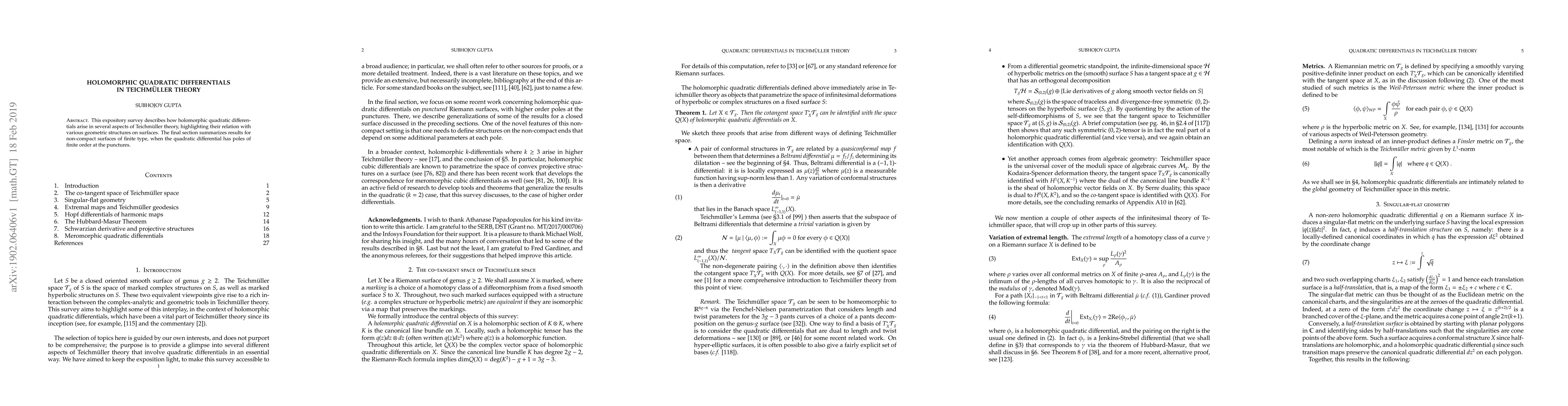 This survey elucidates the role of holomorphic quadratic differentials in Teichmüller theory, linking them to various geometric structures on surfaces. It also covers results for non-compact surfaces of finite type with finite-order poles at punctures.