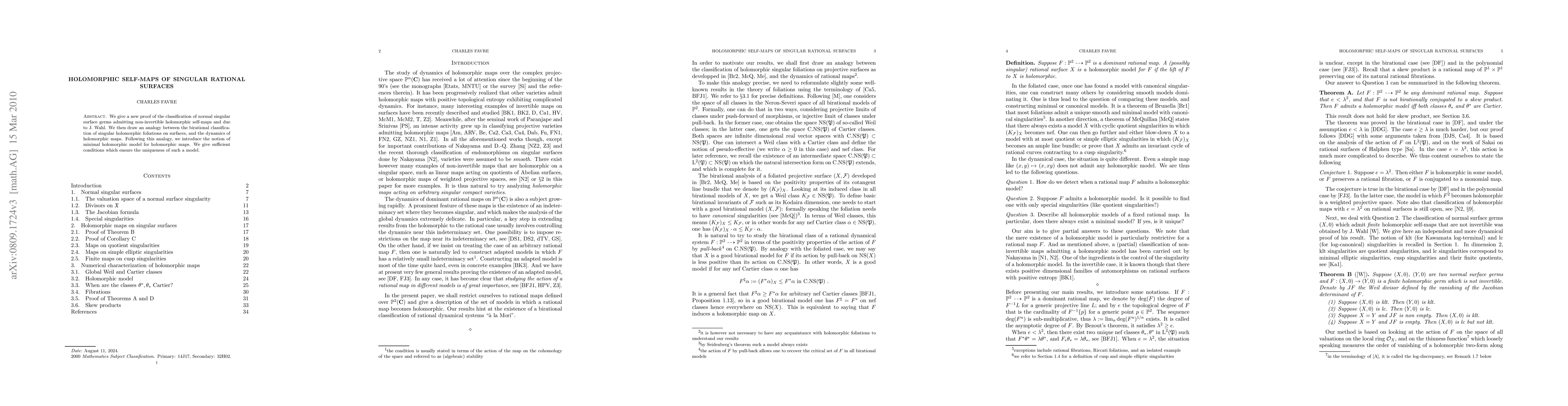 We give a new proof of the classification of normal singular surface germs admitting non-invertible holomorphic self-maps and due to J. Wahl. We then draw an analogy between the birational classification of singular holomorphic foliations on surfaces, and the dynamics of holomorphic maps. Following this analogy, we introduce the notion of minimal holomorphic model for holomorphic maps. We give sufficient conditions which ensure the uniqueness of such a model.