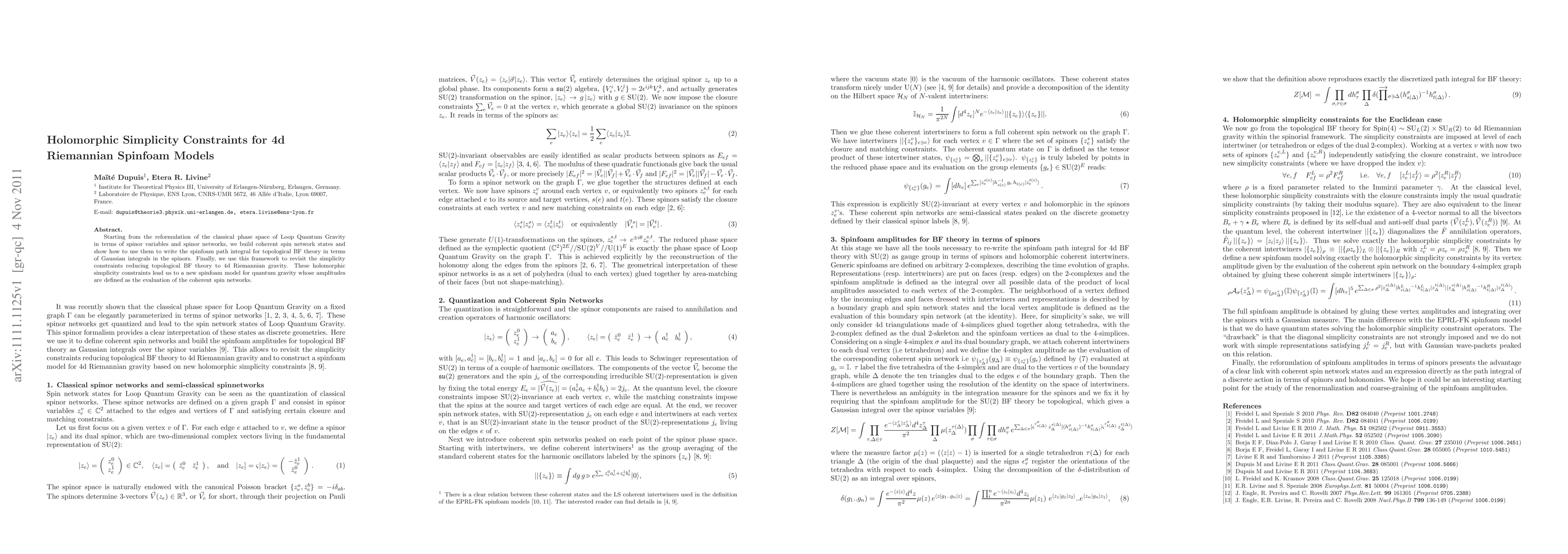 This paper reformulates Loop Quantum Gravity's classical phase space using spinor variables and constructs coherent spin network states to express the spinfoam path integral for topological BF theory as Gaussian integrals. It introduces holomorphic simplicity constraints that reduce BF theory to 4d Riemannian gravity, leading to a new spinfoam model for quantum gravity.