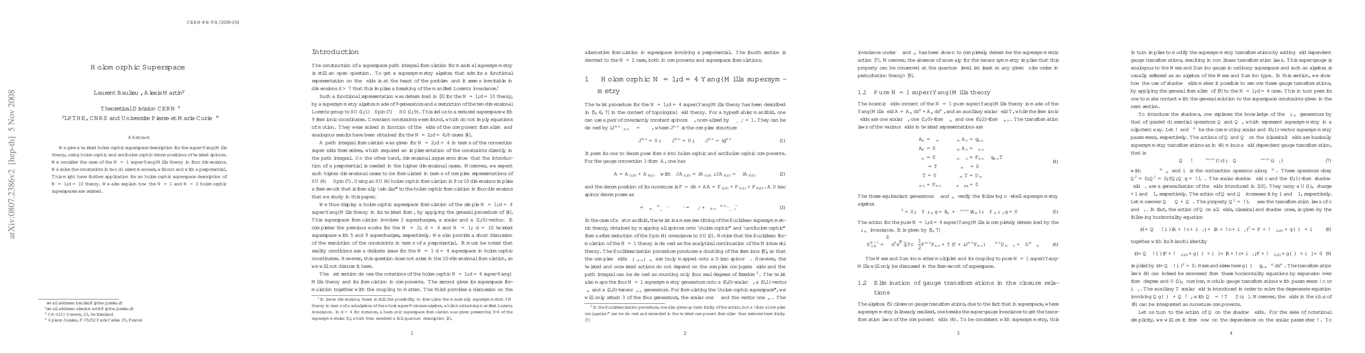 We give a twisted holomorphic superspace description for the super-Yang-Mills theory, using holomorphic and antiholomorphic decompositions of twisted spinors. We consider the case of the N=1 super-Yang-Mills theory in four dimensions. We solve the constraints in two different manners, without and with a prepotential. This might have further application for an holomorphic superspace description of N=1,d=10 theory. We also explain how the N=1 and N=2 holomorphic superspaces are related.