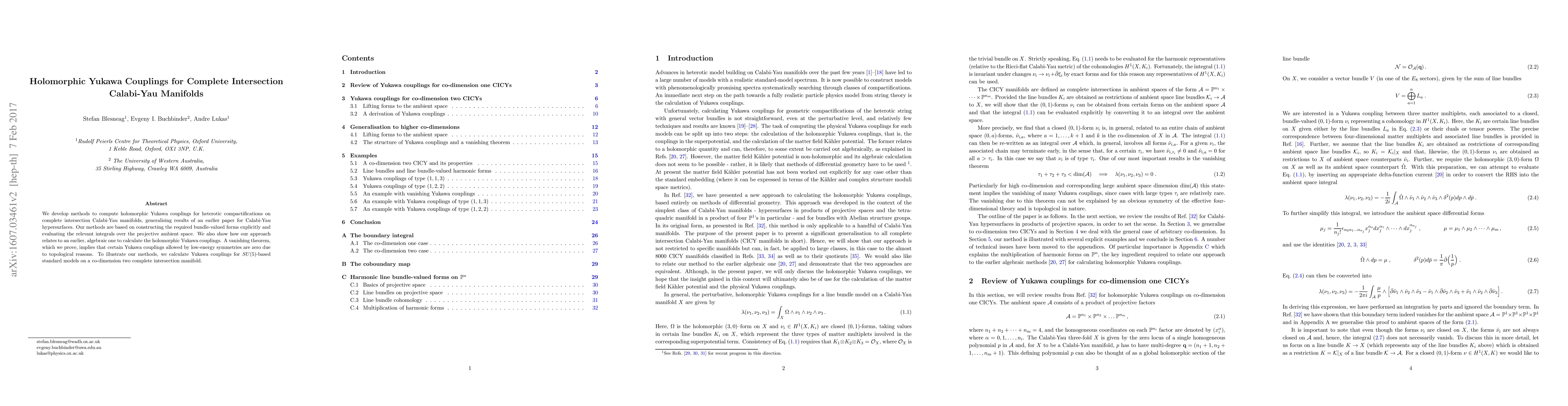 This paper develops new techniques for computing holomorphic Yukawa couplings in heterotic compactifications on complete intersection Calabi-Yau manifolds, extending previous results for Calabi-Yau hypersurfaces. It provides explicit constructions and integral evaluations, and proves a vanishing theorem indicating that certain Yukawa couplings are zero due to topological constraints.