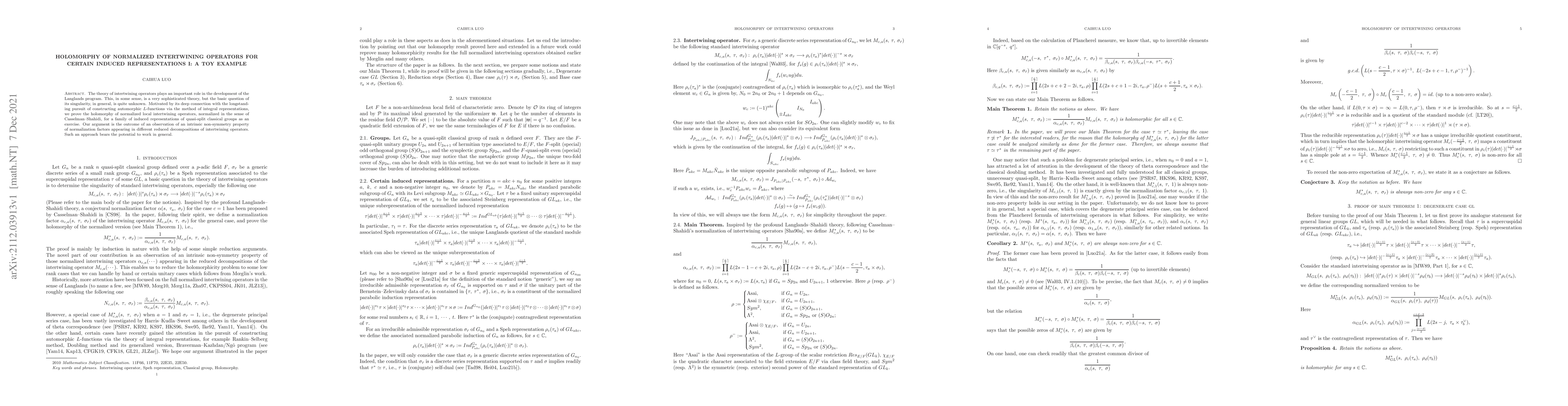 Researchers prove that normalized local intertwining operators for induced representations of quasi-split classical groups have holomorphy, a crucial property for the Langlands program. This breakthrough has potential implications for constructing automorphic L-functions using integral representations.