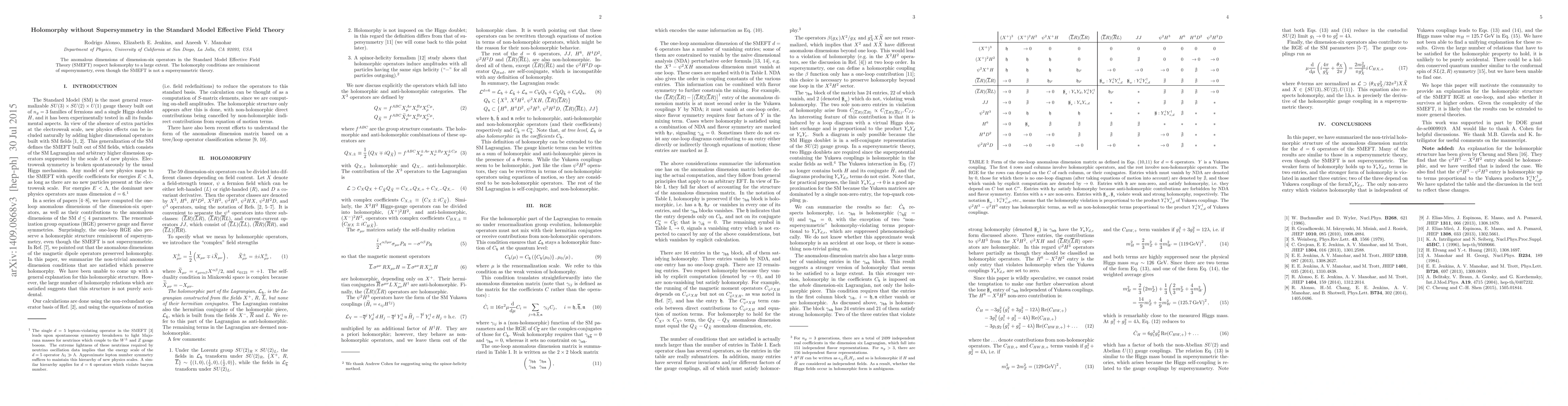 Summary: This paper explores the anomalous dimensions of dimension-six operators in the Standard Model Effective Field Theory (SMEFT), revealing that they largely adhere to holomorphy conditions, which are typically associated with supersymmetry, despite the SMEFT lacking supersymmetric features.
