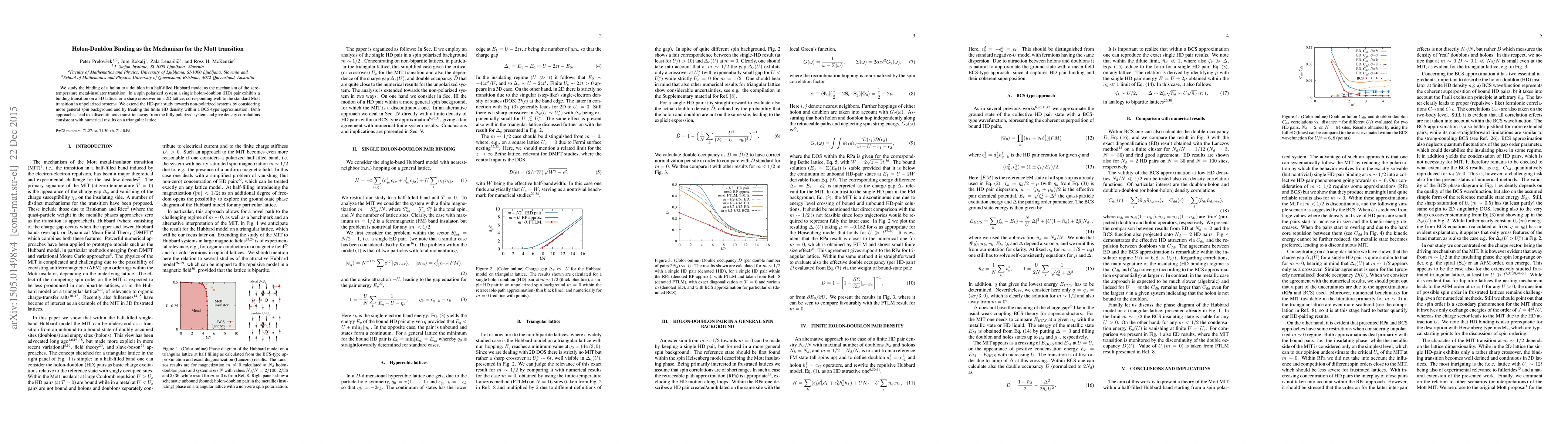This paper explores holon-doublon binding as the underlying mechanism for the Mott transition in the Hubbard model, showing that a binding transition or sharp crossover occurs in spin-polarized systems on non-bipartite lattices. The study extends to non-polarized systems, revealing a discontinuous transition and density correlations aligning with numerical results on triangular lattices.