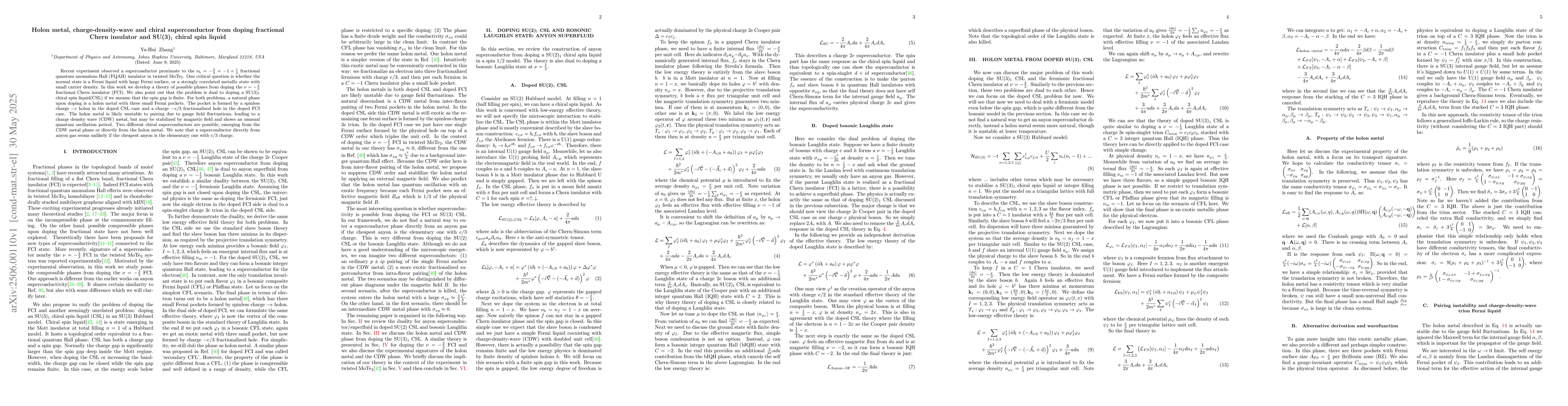 The work introduces a duality between doping FCI and CSL, proposing novel phases like holon metal, CDW metal, and chiral superconductors arising from these phases.