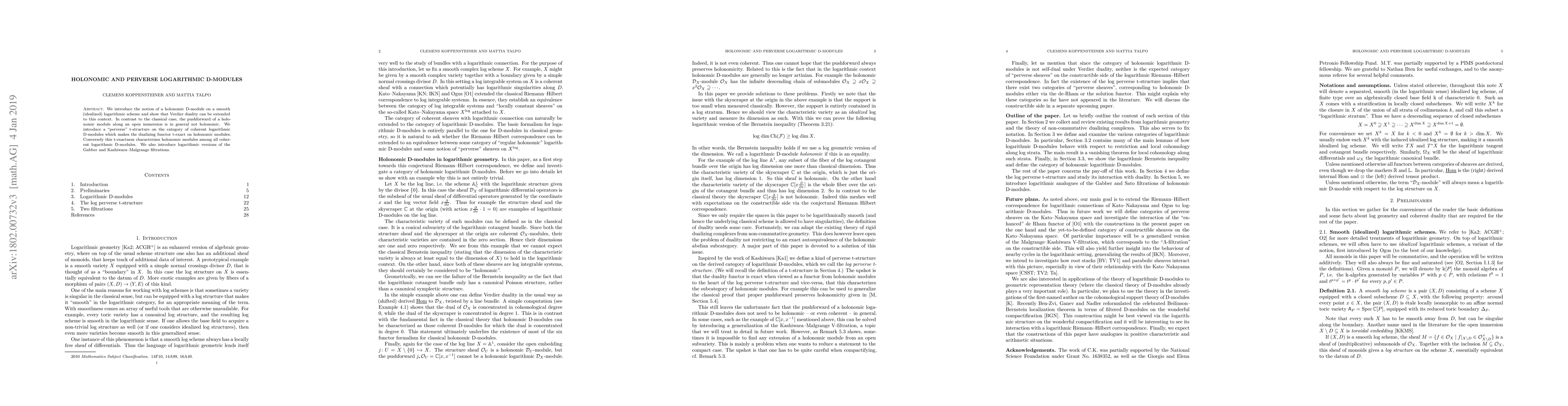 This research extends classical theory of holonomic D-modules to the logarithmic setting, introducing new concepts and techniques to handle singularities and non-smooth structures, thus opening new avenues for study in algebraic geometry and representation theory.