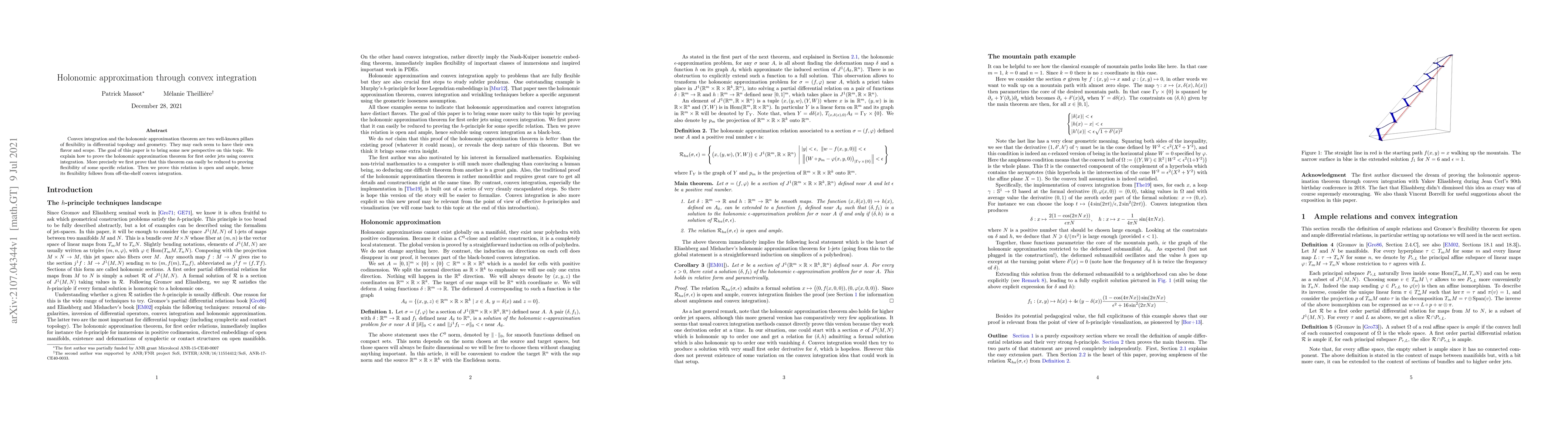 Convex integration and the holonomic approximation theorem are two well-known pillars of flexibility in differential topology and geometry. They may each seem to have their own flavor and scope. The goal of this paper is to bring some new perspective on this topic. We explain how to prove the holonomic approximation theorem for first order jets using convex integration. More precisely we first prove that this theorem can easily be reduced to proving flexibility of some specific relation. Then we prove this relation is open and ample, hence its flexibility follows from off-the-shelf convex integration.