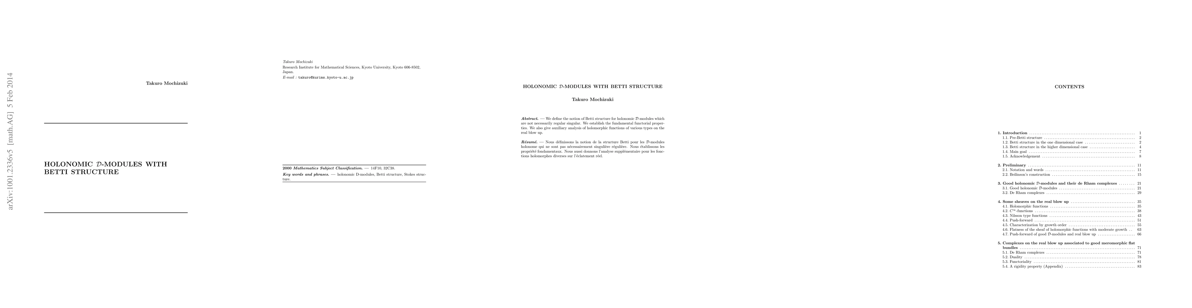We define the notion of Betti structure for holonomic D-modules which are not necessarily regular singular. We establish the fundamental functorial properties. We also give auxiliary analysis of holomorphic functions of various types on the real blow up.