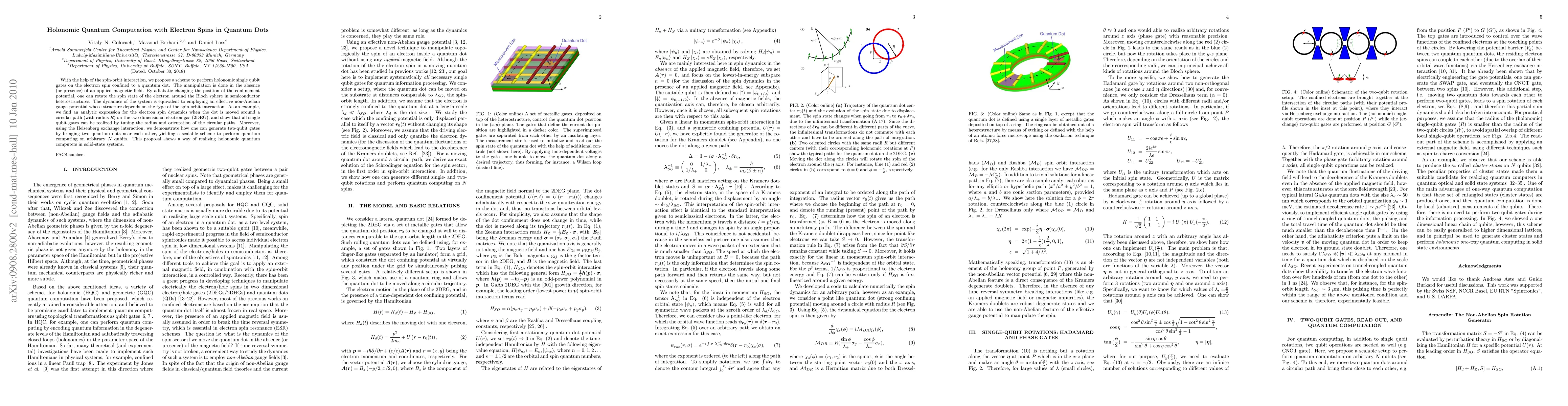 Researchers propose a method to perform holonomic quantum computing using electron spins in quantum dots, enabling scalable computation with arbitrary N qubits.