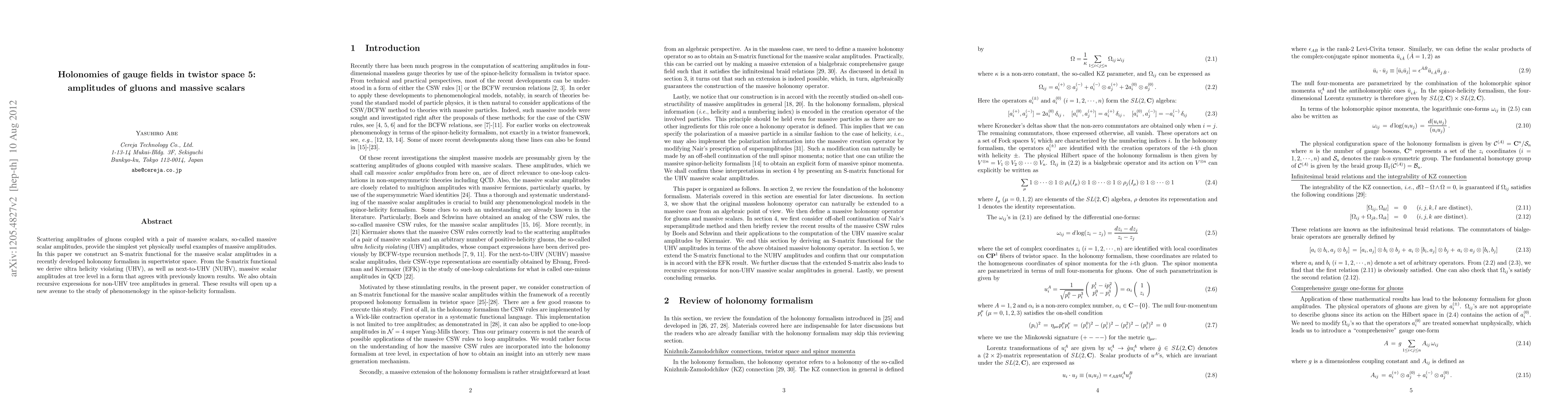 This paper uses a new mathematical framework to calculate scattering amplitudes of gluons with massive scalars, providing a tool for studying particle physics phenomena.