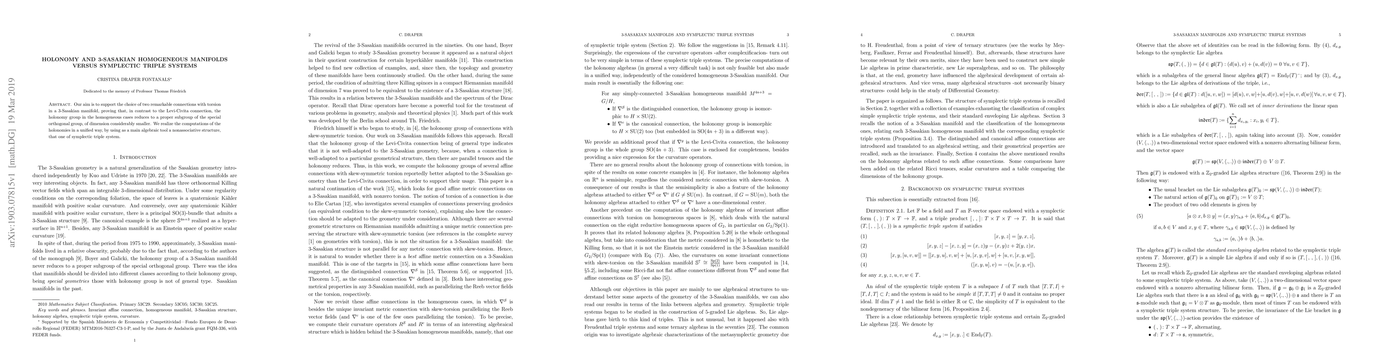 This paper explores two specific torsion connections in 3-Sasakian manifolds, demonstrating that their holonomy groups are subgroups of smaller dimension than the Levi-Civita connection's. The research unifies holonomy computations using symplectic triple systems, a nonassociative algebraic structure.
