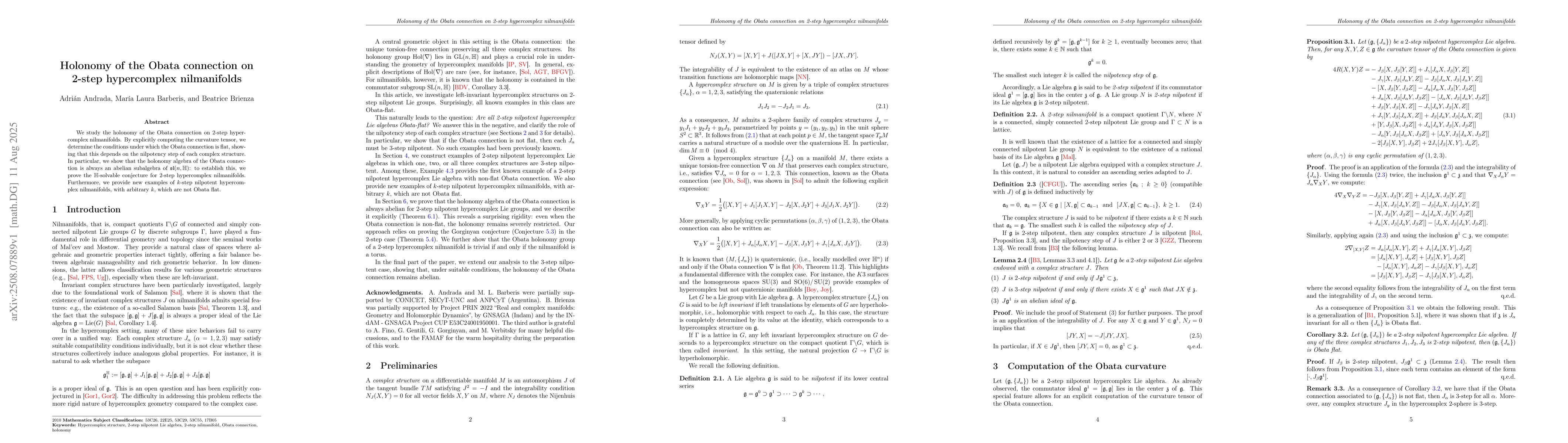 We study the holonomy of the Obata connection on 2-step hypercomplex nilmanifolds. By explicitly computing the curvature tensor, we determine the conditions under which the Obata connection is flat, showing that this depends on the nilpotency step of each complex structure. In particular, we show that the holonomy algebra of the Obata connection is always an abelian subalgebra of $\mathfrak{sl}(n, \mathbb{H})$: to establish this, we prove the $\mathbb{H}$-solvable conjecture for 2-step hypercomplex nilmanifolds. Furthermore, we provide new examples of $k$-step nilpotent hypercomplex nilmanifolds, with arbitrary $k$, which are not Obata flat.
