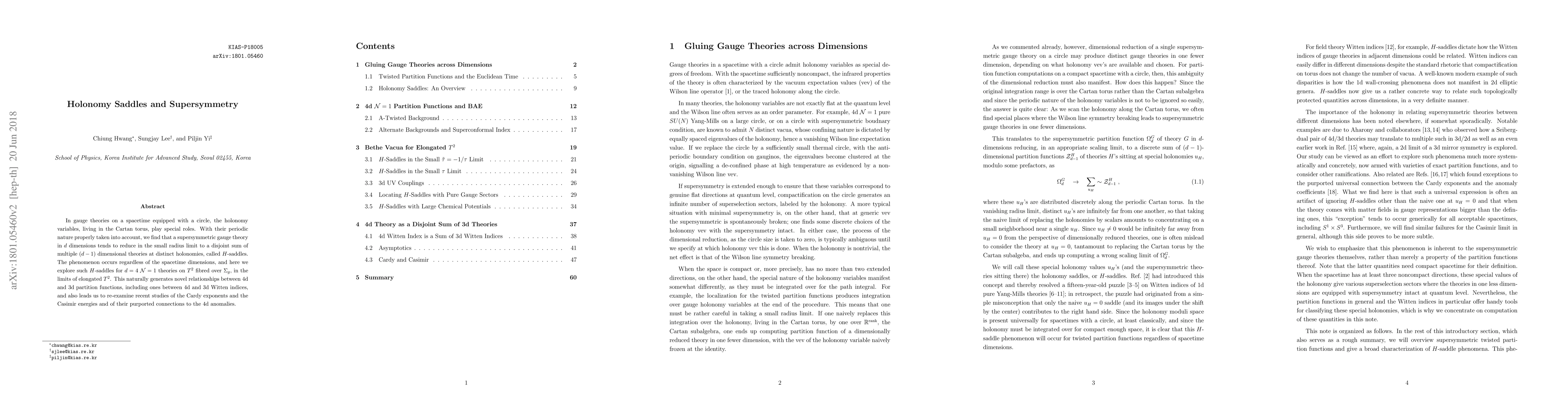In gauge theories on a spacetime equipped with a circle, the holonomy variables, living in the Cartan torus, play special roles. With their periodic nature properly taken into account, we find that a supersymmetric gauge theory in $d$ dimensions tends to reduce in the small radius limit to a disjoint sum of multiple $(d-1)$ dimensional theories at distinct holonomies, called $H$-saddles. The phenomenon occurs regardless of the spacetime dimensions, and here we explore such $H$-saddles for $d=4$ $\cal N=1$ theories on $T^2$ fibred over $\Sigma_g$, in the limits of elongated $T^2$. This naturally generates novel relationships between 4d and 3d partition functions, including ones between 4d and 3d Witten indices, and also leads us to re-examine recent studies of the Cardy exponents and the Casimir energies and of their purported connections to the 4d anomalies.