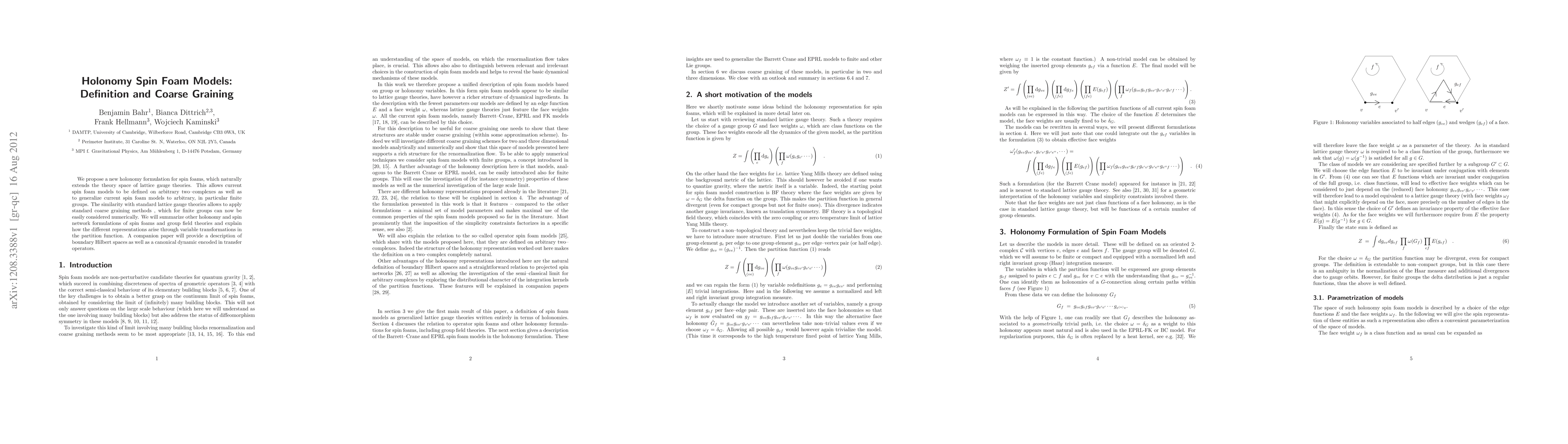 This paper introduces a novel holonomy-based approach to spin foam models, extending their applicability to arbitrary two-complexes and finite groups, and allows for standard coarse graining methods to be applied. It also discusses various formulations and how they relate through transformations in the partition function.