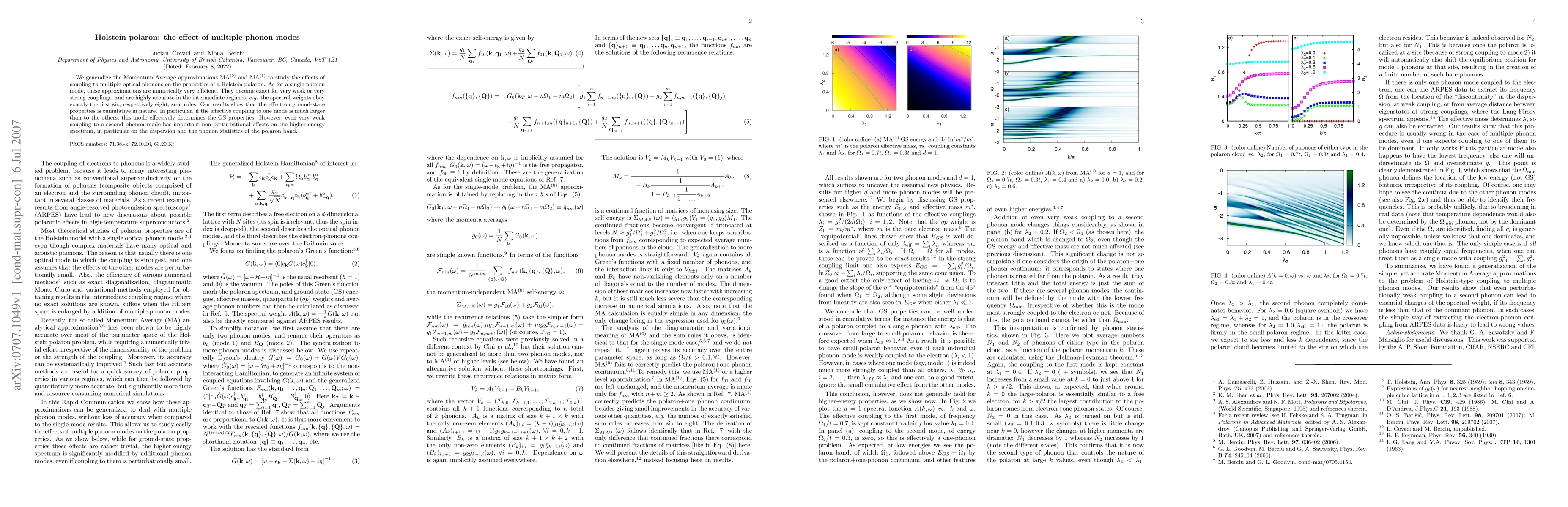 We generalize the Momentum Average approximations MA$^{(0)}$ and MA$^{(1)}$ to study the effects of coupling to multiple optical phonons on the properties of a Holstein polaron. As for a single phonon mode, these approximations are numerically very efficient. They become exact for very weak or very strong couplings, and are highly accurate in the intermediate regimes, {\em e.g.} the spectral weights obey exactly the first six, respectively eight, sum rules. Our results show that the effect on ground-state properties is cumulative in nature. In particular, if the effective coupling to one mode is much larger than to the others, this mode effectively determines the GS properties. However, even very weak coupling to a second phonon mode has important non-perturbational effects on the higher energy spectrum, in particular on the dispersion and the phonon statistics of the polaron band.