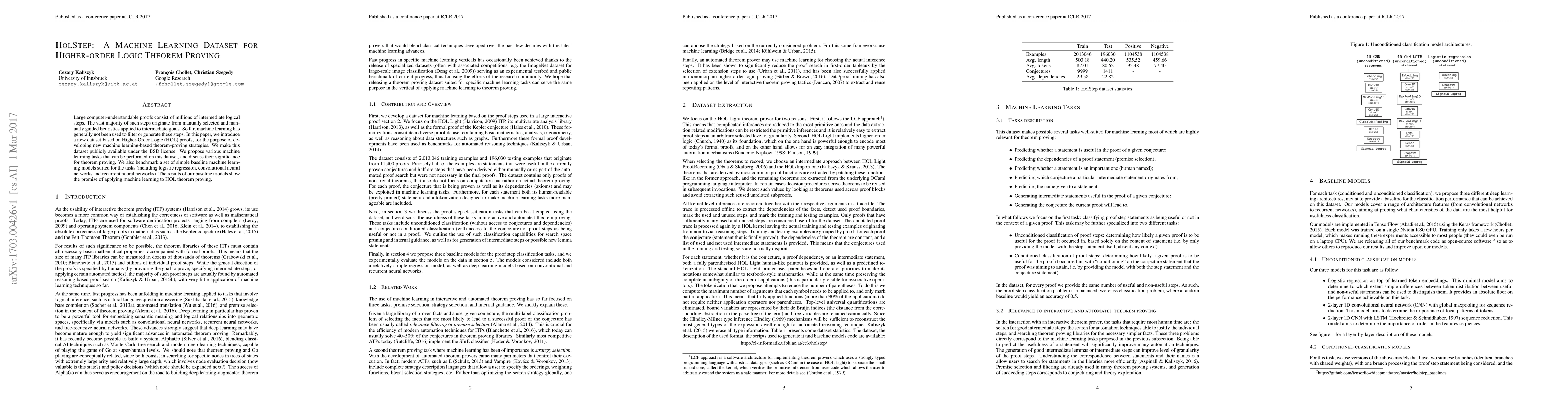 This paper introduces a new machine learning dataset based on Higher-Order Logic (HOL) proofs, aiming to develop advanced theorem-proving strategies. The authors propose various machine learning tasks and benchmark simple baseline models, indicating the potential of machine learning in HOL theorem proving.