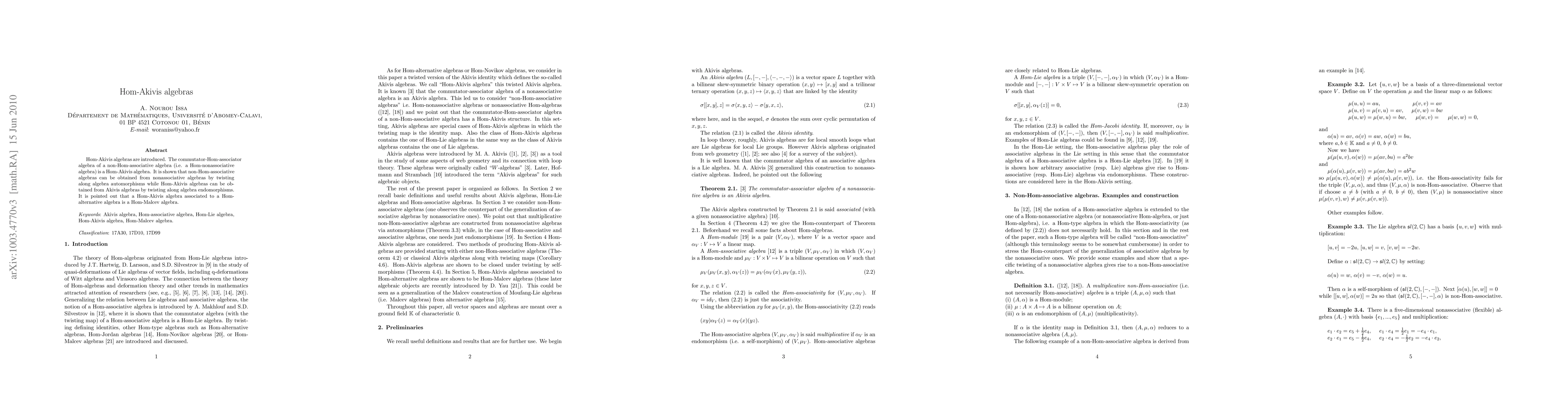 Hom-Akivis algebras are introduced. The commutator-Hom-associator algebra of a non-Hom-associative algebra (i.e. a Hom-nonassociative algebra) is a Hom-Akivis algebra. It is shown that non-Hom-associative algebras can be obtained from nonassociative algebras by twisting along algebra automorphisms while Hom-Akivis algebras can be obtained from Akivis algebras by twisting along algebra endomorphisms. It is pointed out that a Hom-Akivis algebra associated to a Hom-alternative algebra is a Hom-Malcev algebra.