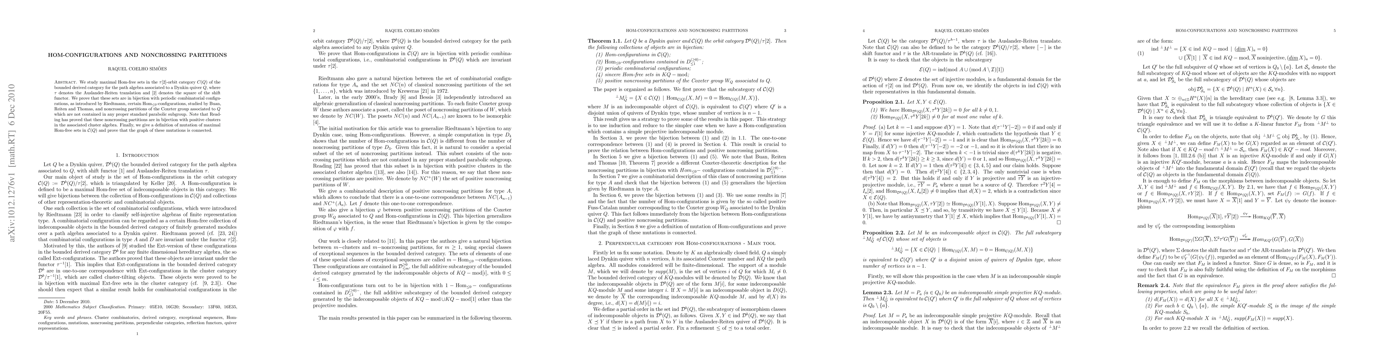 Let Q be a Dynkin quiver. The bounded derived category of the path algebra of Q has an autoequivalence given by the composition of the Auslander-Reiten translate and the square of the shift functor. We study maximal Hom-free sets in the corresponding orbit category C(Q). We prove that these sets are in bijection with periodic combinatorial configurations, as introduced by Riedtmann, certain Hom<=0-configurations, studied by Buan, Reiten and Thomas, and noncrossing partitions of the Coxeter group associated to Q which are not contained in any proper standard parabolic subgroup. Note that Reading has proved that these noncrossing partitions are in bijection with positive clusters in the associated cluster algebra. Finally, we give a definition of mutations of maximal Hom-free sets in C(Q) and prove that the graph of these mutations is connected.