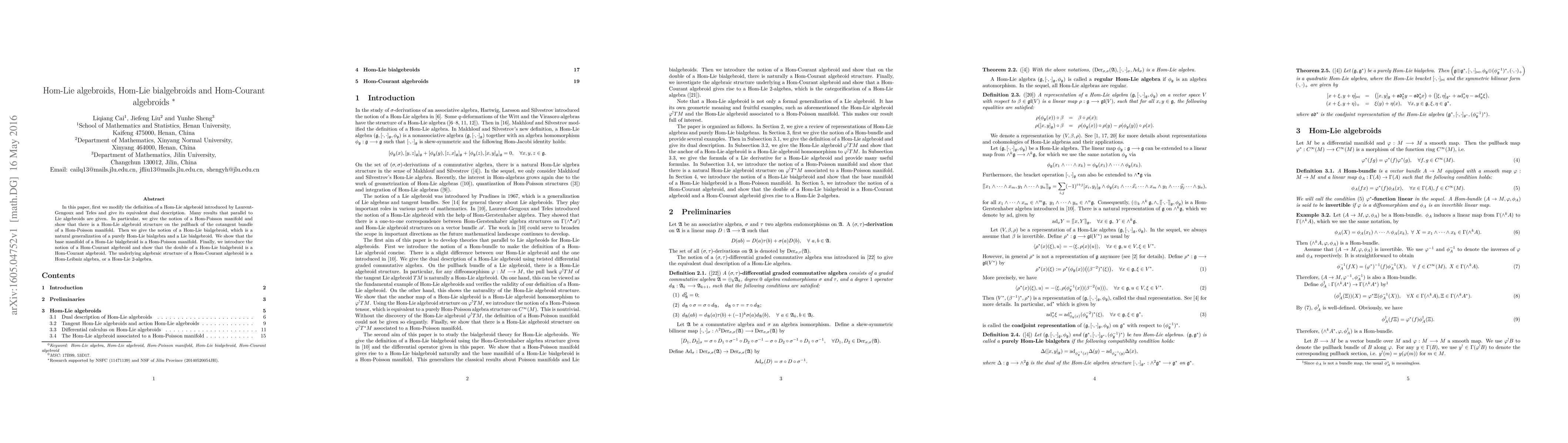 The paper presents a detailed construction and characterization of Hom-Lie algebroids, Hom-Lie bialgebroids, and Hom-Courant algebroids, extending the classical theory of Lie algebroids to incorporate Hom-Lie algebraic structures.